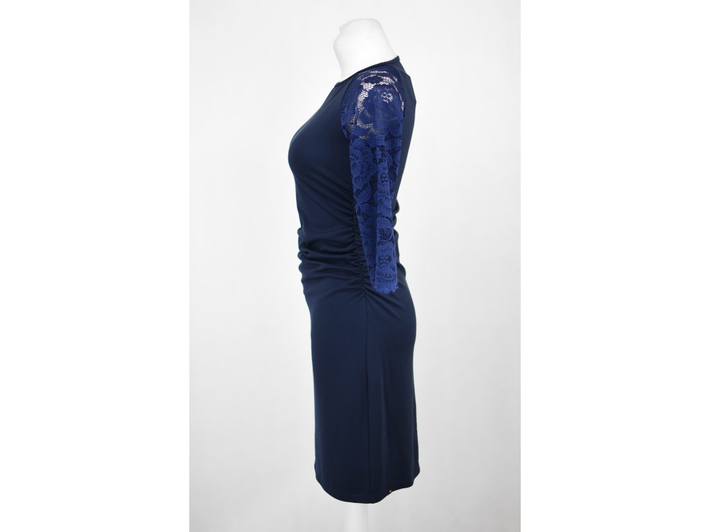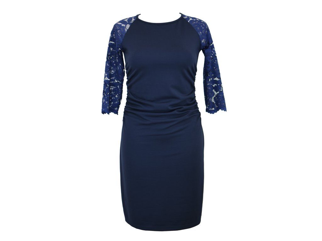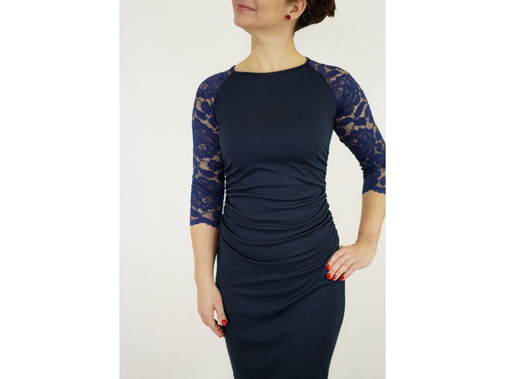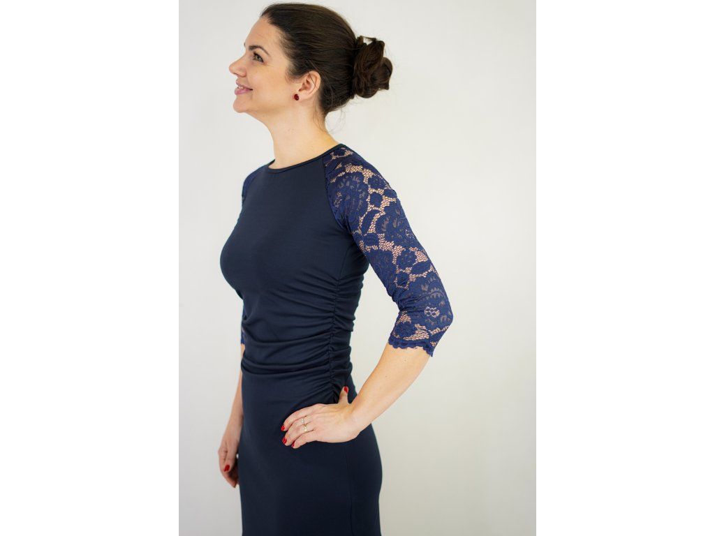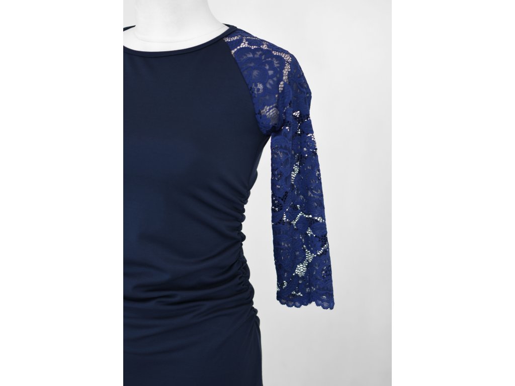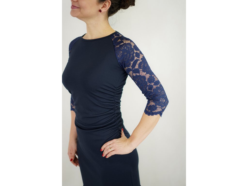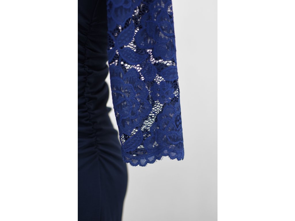 Šaty řasené s krajkovými rukávy - tmavě modré B