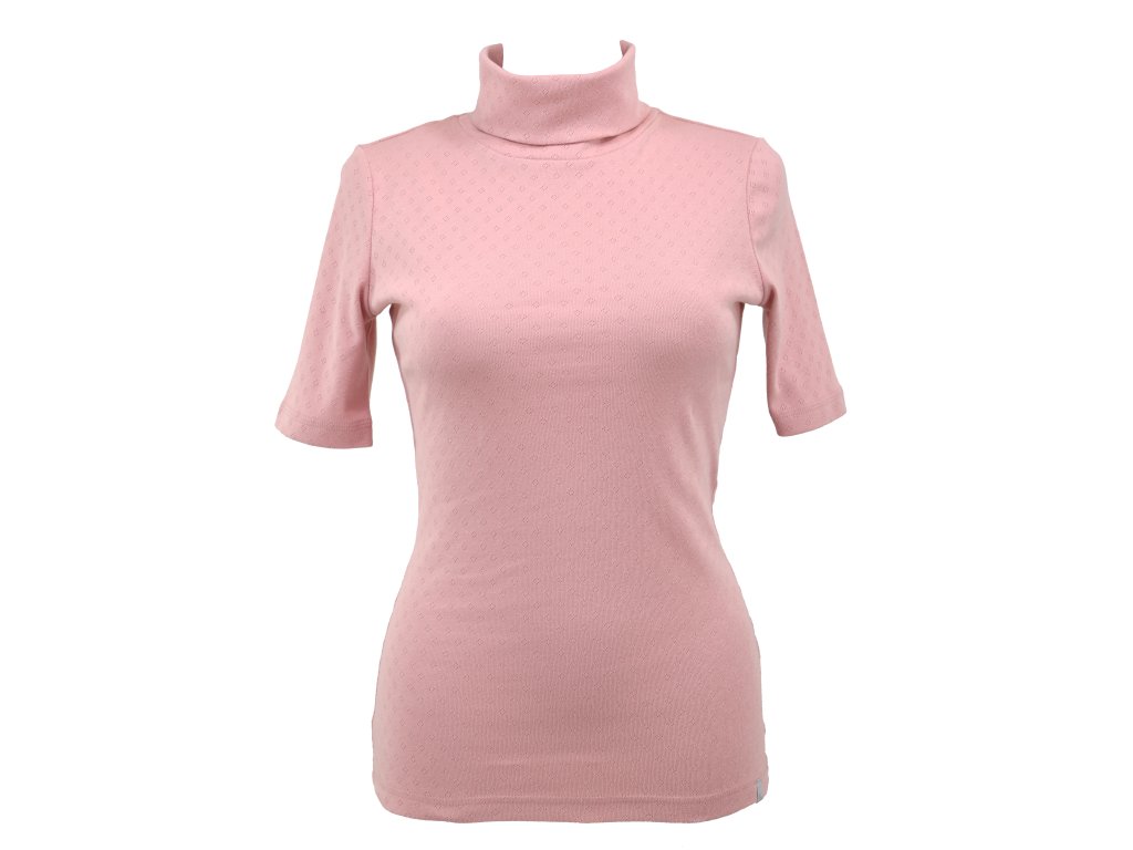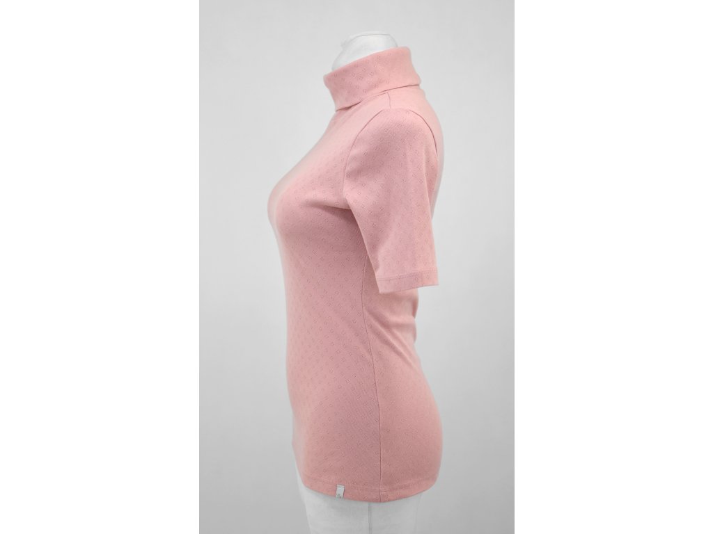 Dámské tričko s nižším stojáčkem / rolákem, projmuté do pasu. Rukávek je delší, ale stále nad loket. :)