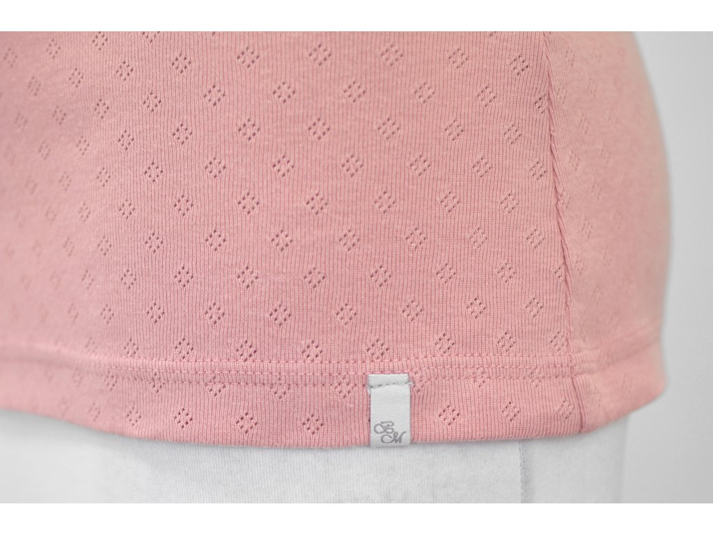 • Materiál:  96% bavlna + 4% elastan - velmi příjemný elastický úplet se vzorem, dírkovaný