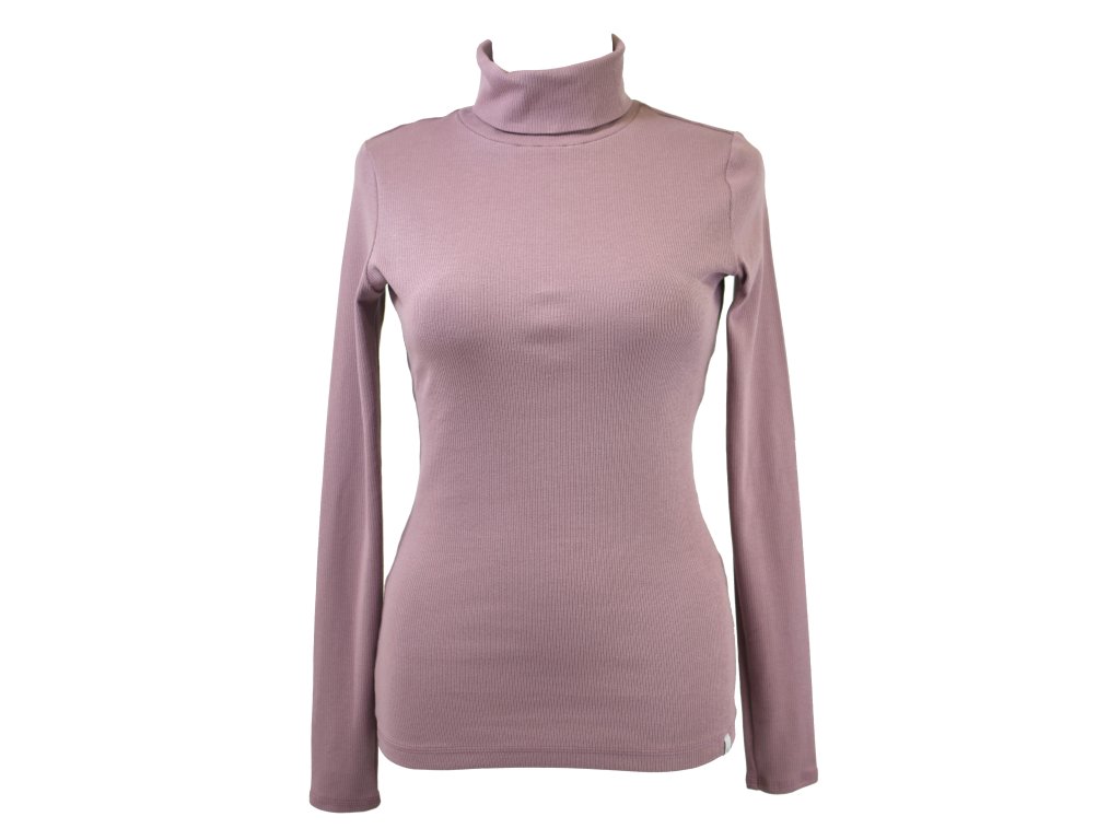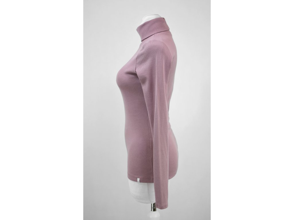 Dámské tričko s nižším stojáčkem / rolákem, projmuté do pasu a s dlouhými rukávy.