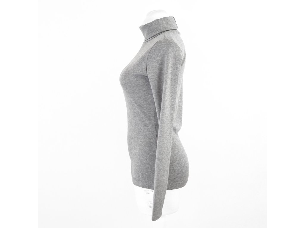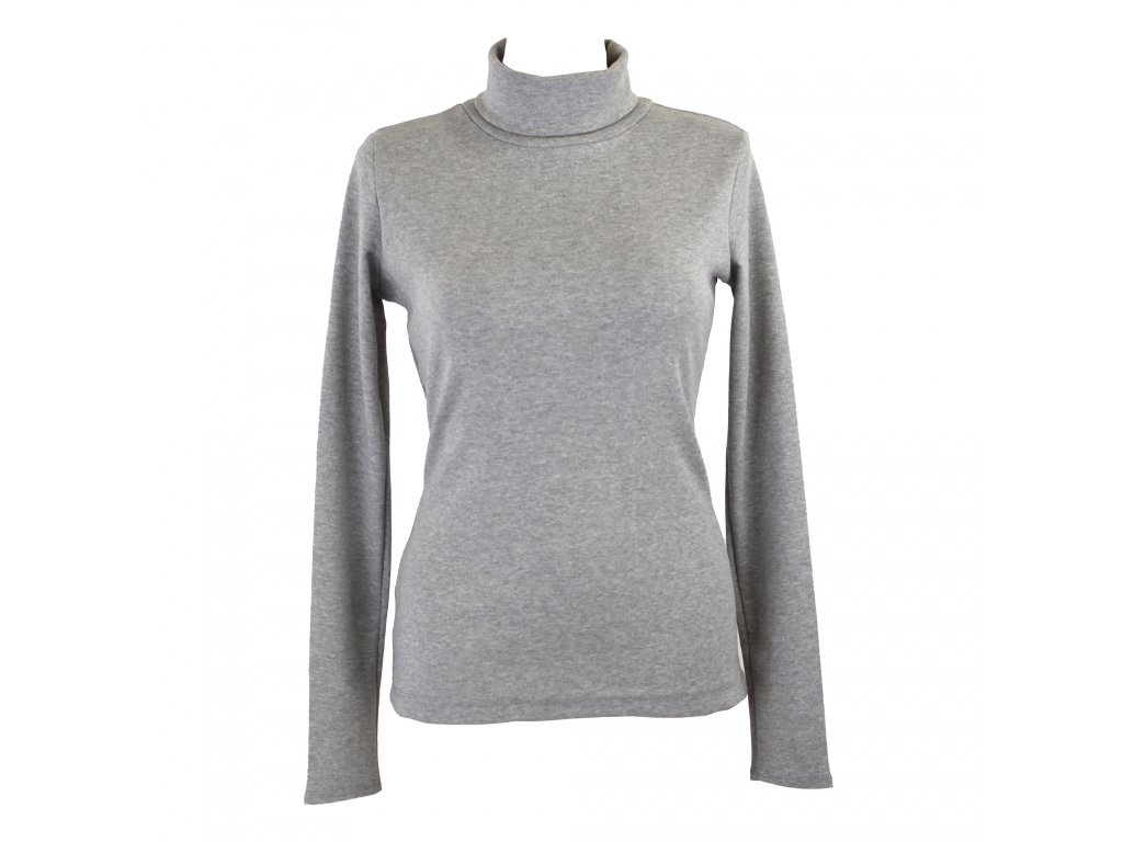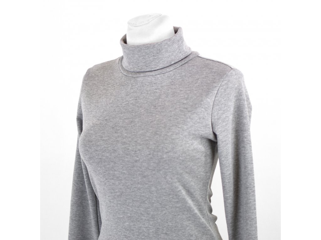 Dámské tričko s nižším stojáčkem / rolákem, projmuté do pasu a s dlouhými rukávy.