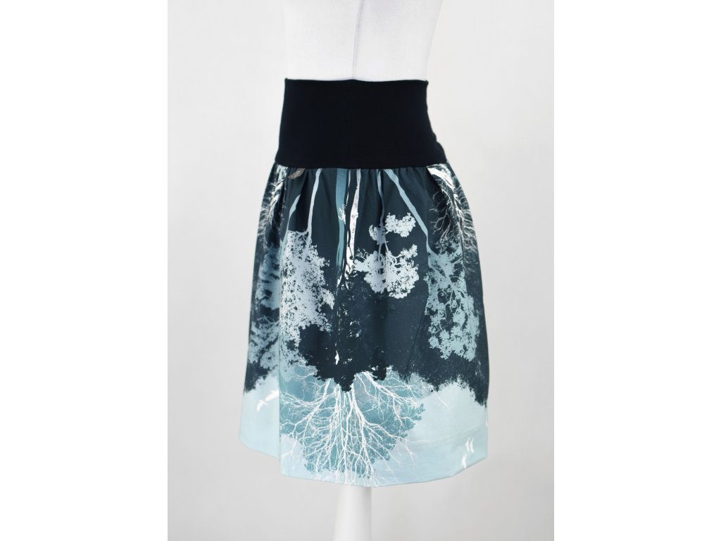 Dámská sukně balonového střihu s ROVNÝM dolním okrajem a s dvojitým elastickým pasovým okrajem vhodným pro většinu velikostí. Podšité polyesterovou látkou, která je vhodná jak na punčochy, tak na holé nohy a sukně se dá nosit celoročně. Z rubu elastického pasu je nechán otvor na případné vložení gumy na zpevnění či stažení pasu (vhodné pro velikost XS).