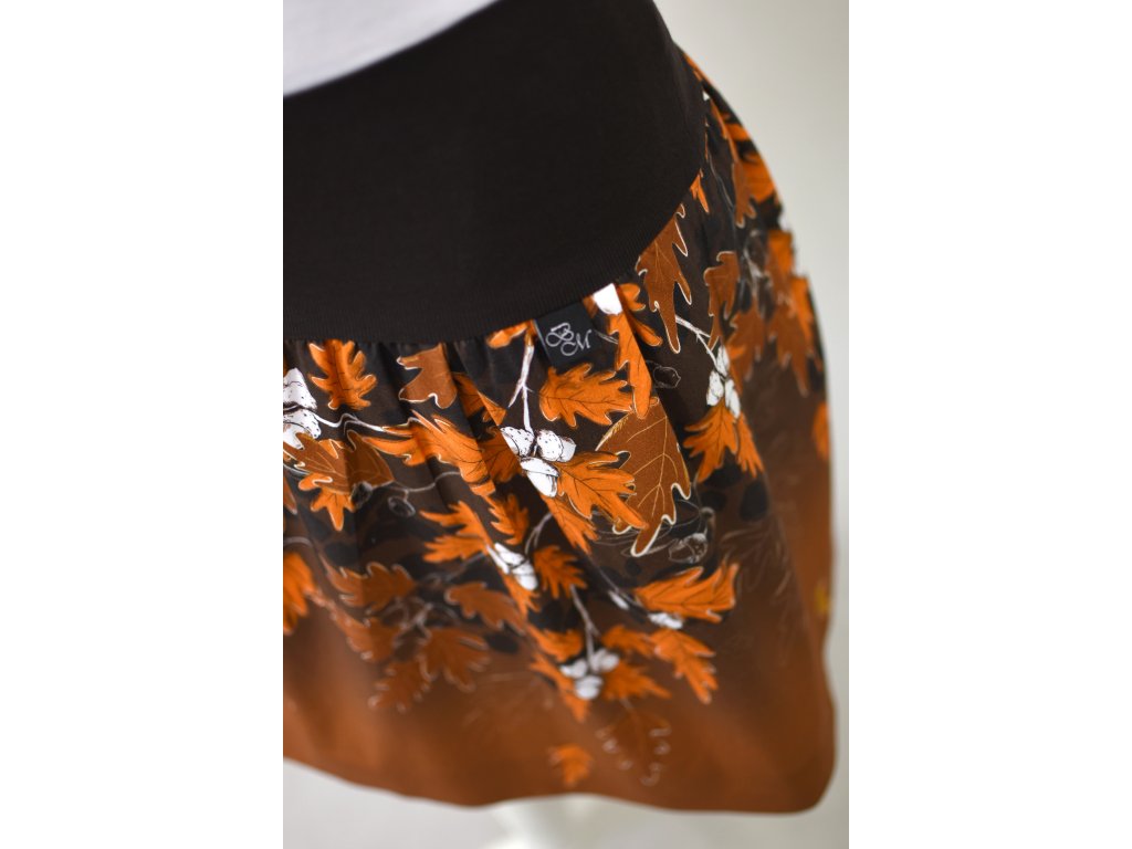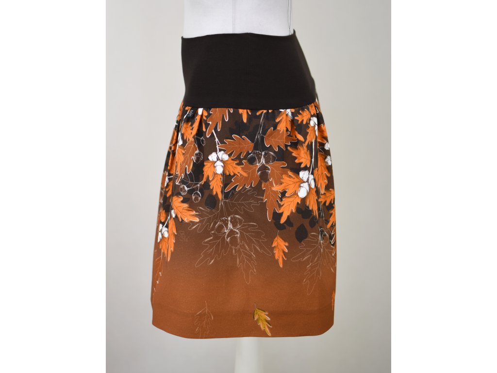 Dámská sukně balonového střihu s ROVNÝM dolním okrajem a s dvojitým elastickým pasovým okrajem vhodným pro většinu velikostí. Podšité polyesterovou látkou, která je vhodná jak na punčochy, tak na holé nohy a sukně se dá nosit celoročně. Z rubu elastického pasu je nechán otvor na případné vložení gumy na zpevnění či stažení pasu (vhodné pro velikost XS).