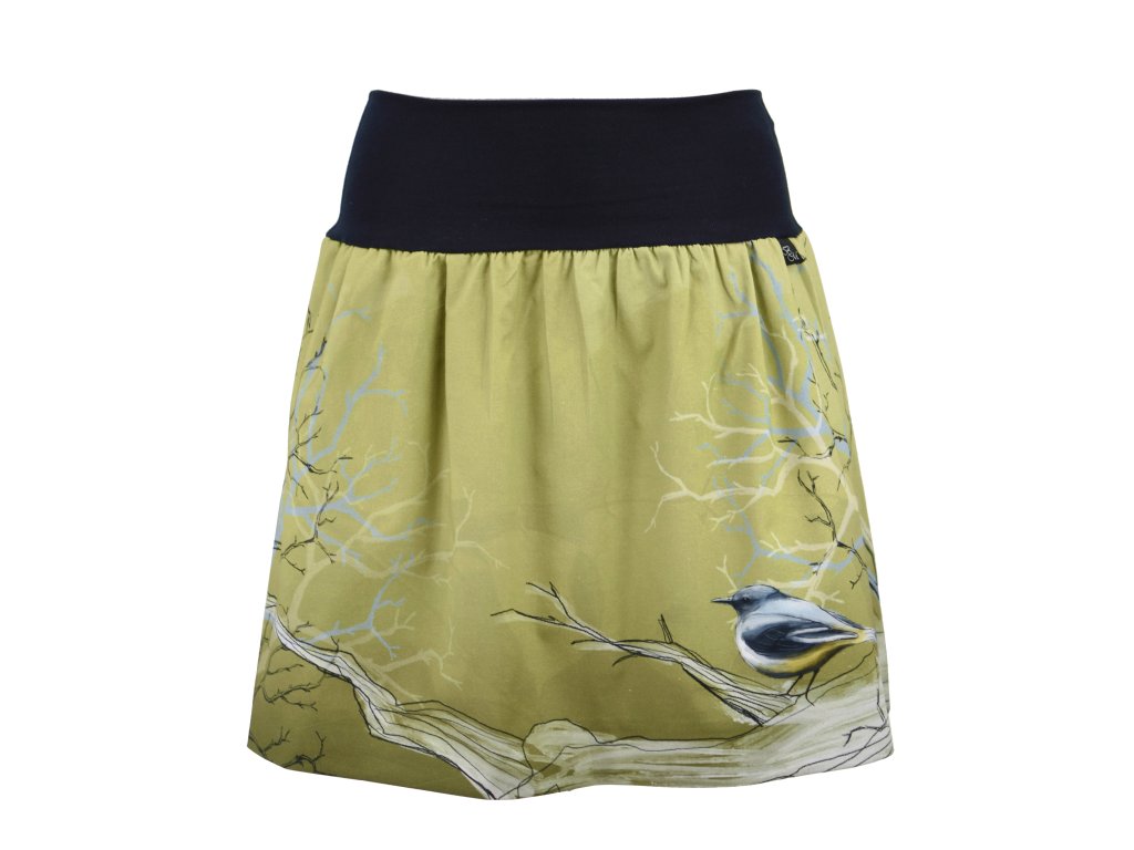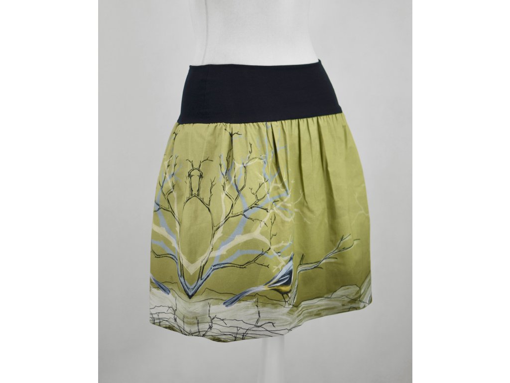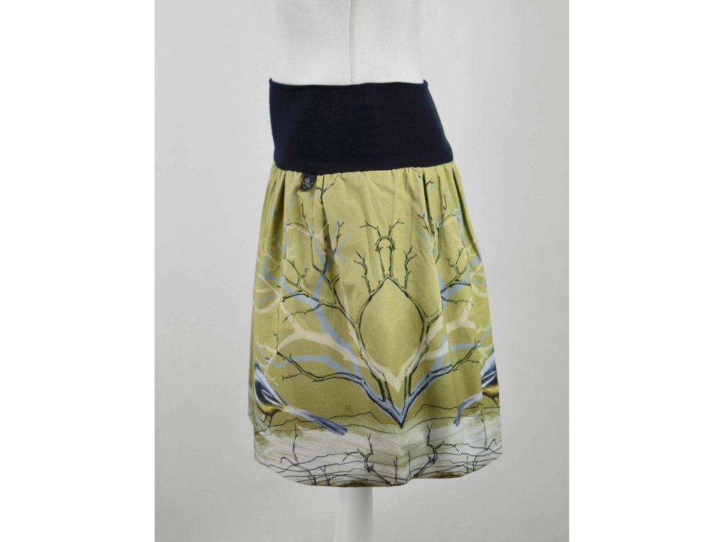 Dámská sukně balonového střihu s ROVNÝM dolním okrajem a s dvojitým elastickým pasovým okrajem vhodným pro většinu velikostí. Podšité polyesterovou látkou, která je vhodná jak na punčochy, tak na holé nohy a sukně se dá nosit celoročně. Z rubu elastického pasu je nechán otvor na případné vložení gumy na zpevnění či stažení pasu (vhodné pro velikost XS).