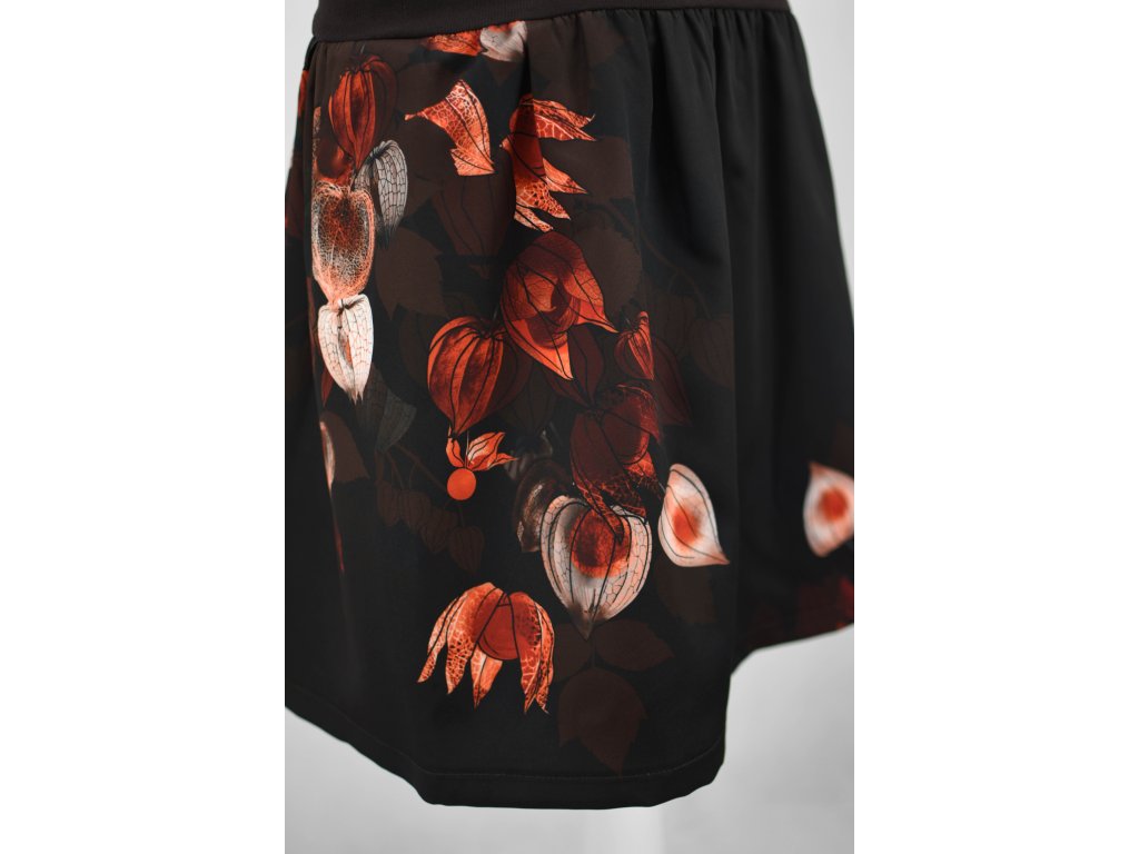 Dámská sukně balonového střihu s ROVNÝM dolním okrajem a s dvojitým elastickým pasovým okrajem vhodným pro většinu velikostí. Podšité polyesterovou látkou, která je vhodná jak na punčochy, tak na holé nohy a sukně se dá nosit celoročně. Z rubu elastického pasu je nechán otvor na případné vložení gumy na zpevnění či stažení pasu (vhodné pro velikost XS).