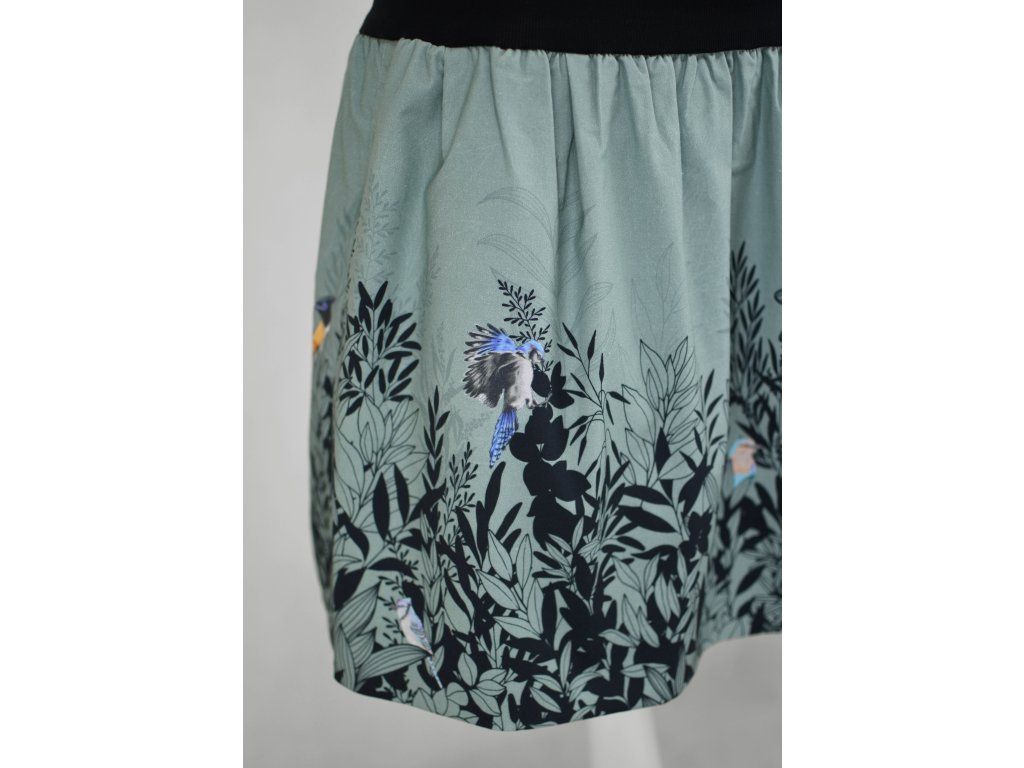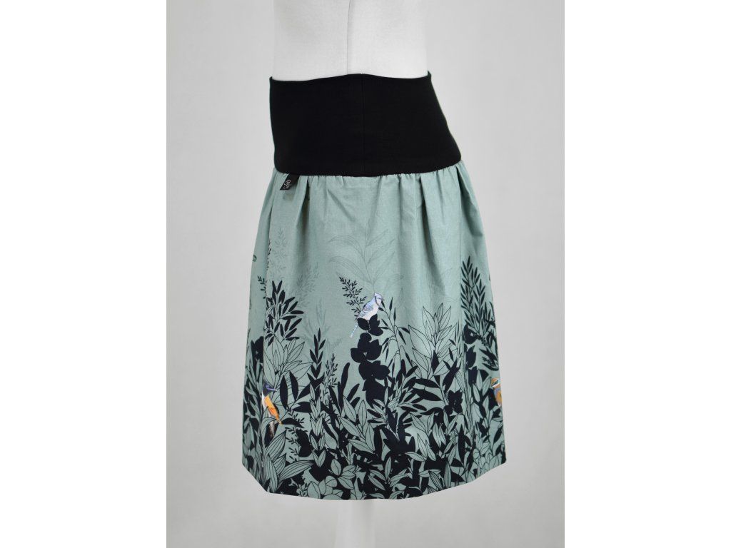 Dámská sukně balonového střihu s ROVNÝM dolním okrajem a s dvojitým elastickým pasovým okrajem vhodným pro většinu velikostí. Podšité polyesterovou látkou, která je vhodná jak na punčochy, tak na holé nohy a sukně se dá nosit celoročně. Z rubu elastického pasu je nechán otvor na případné vložení gumy na zpevnění či stažení pasu (vhodné pro velikost XS).