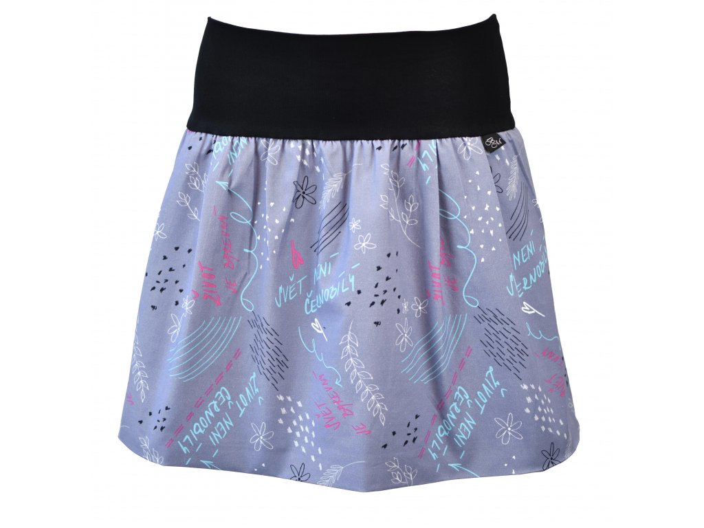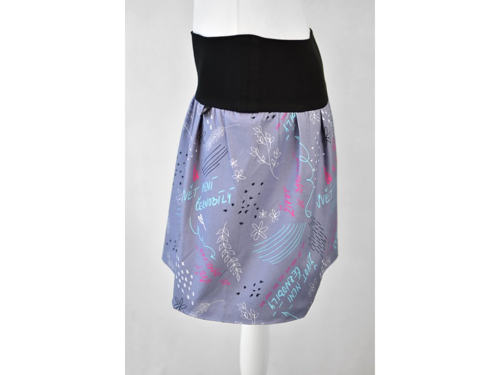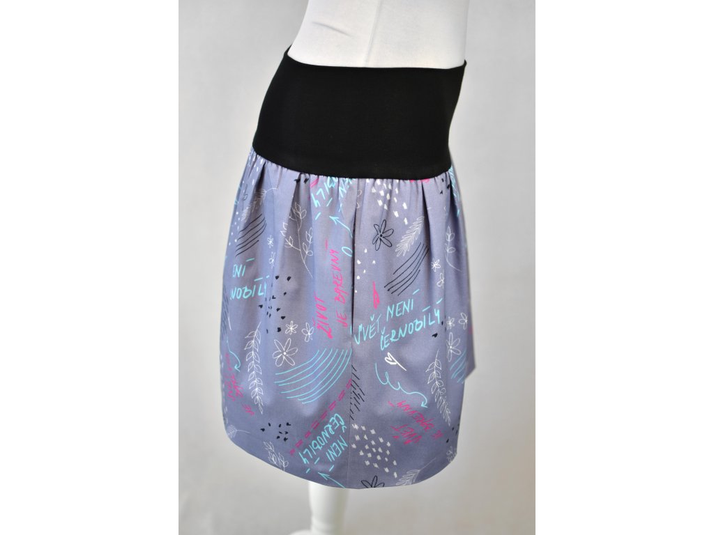 Dámská sukně balonového střihu s ROVNÝM dolním okrajem a s dvojitým elastickým pasovým okrajem vhodným pro většinu velikostí. Podšité polyesterovou látkou, která je vhodná jak na punčochy, tak na holé nohy a sukně se dá nosit celoročně. Z rubu elastického pasu je nechán otvor na případné vložení gumy na zpevnění či stažení pasu (vhodné pro velikost XS).