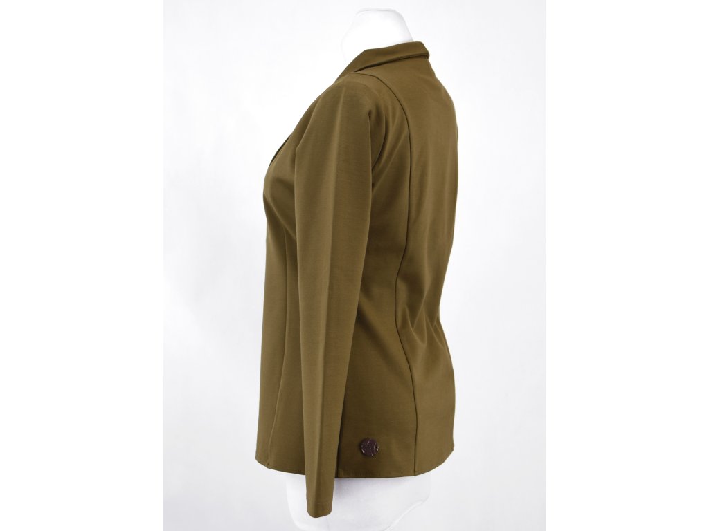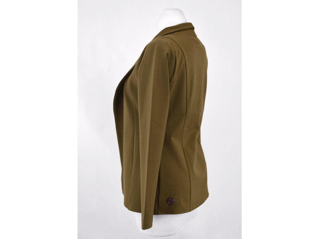 Elegantní i volnočasové sako otevřeného střihu bez zapínání. Je tvarované dvěma švy na předním i zadním dílu, které tvoří siluetu a lehké projmutí do pasu. Má volnější střih. Materiál je pružný, ale zároveň pevnější, drží tvar. Nemá kapsy.