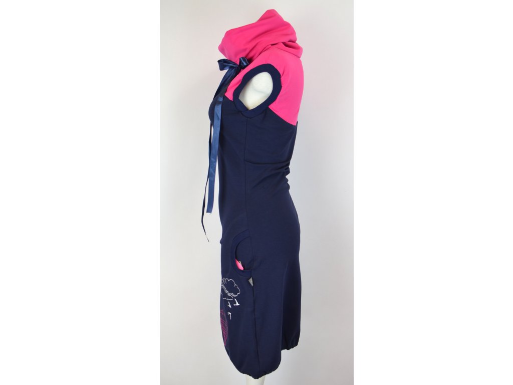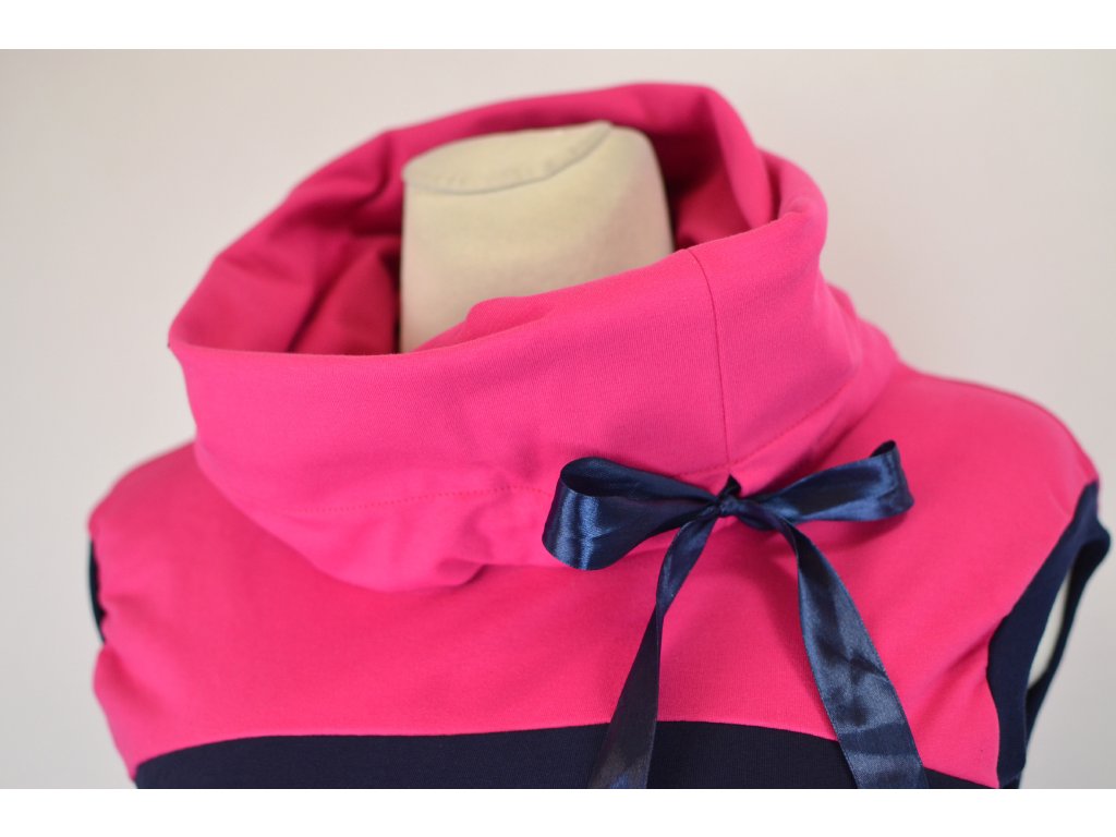 Dámská šatovka projmutá do pasu a volnějšími boky. Má přinechané rukávky lemované úpletem s dostatečným prostorem na vrstvení, dole je stažená do gumičky (otvorem si ji můžete vyndat nebo povolit/utáhnout). Šatovka je určená k vrstvení – podvléknete tričkem a punčochami nebo legínami a hurá do světa. Skvěle se unosí s tričky všemožných barev nebo s barevnými punčochami.