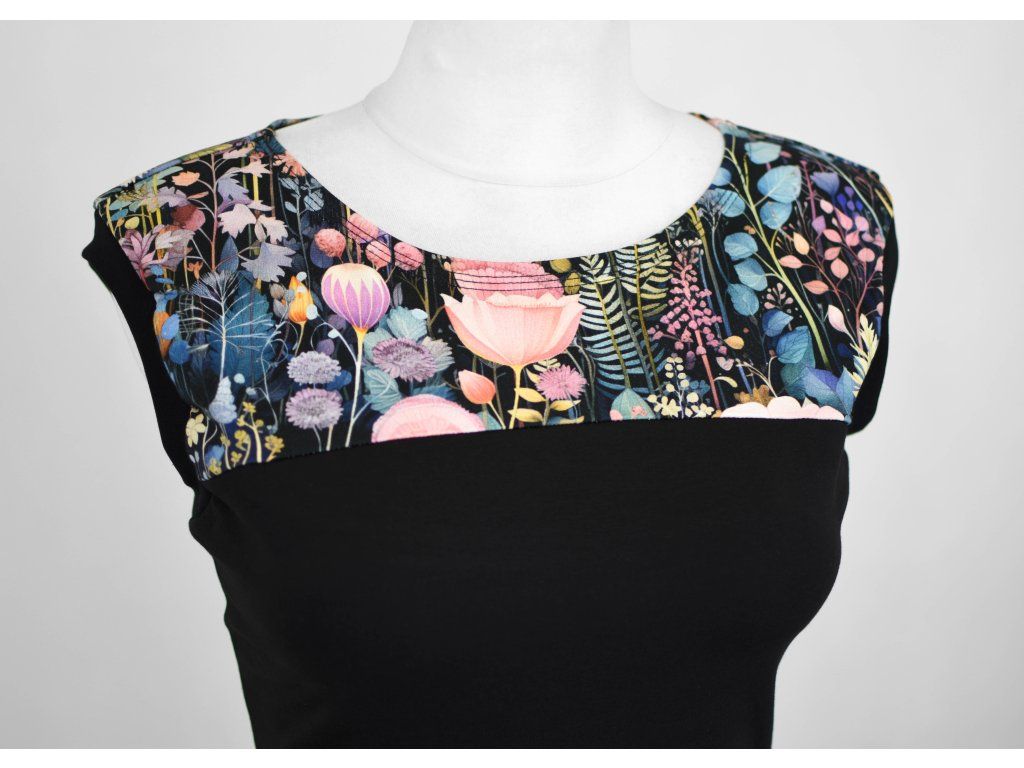 Dámská šatovka projmutá do pasu a volnějšími boky. Má přinechané rukávky lemované úpletem s dostatečným prostorem na vrstvení, dole je stažená gumičkou provlečenou ve švu (dá se vyndat otvorem z rubu). Šatovka je určená k vrstvení – podvléknete tričkem a punčochami nebo legínami a hurá do světa. Skvěle se unosí s tričky všemožných barev nebo s barevnými punčochami.