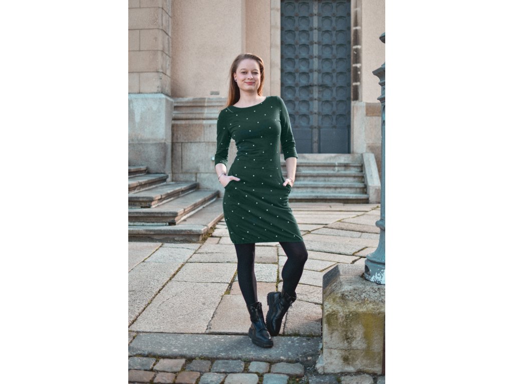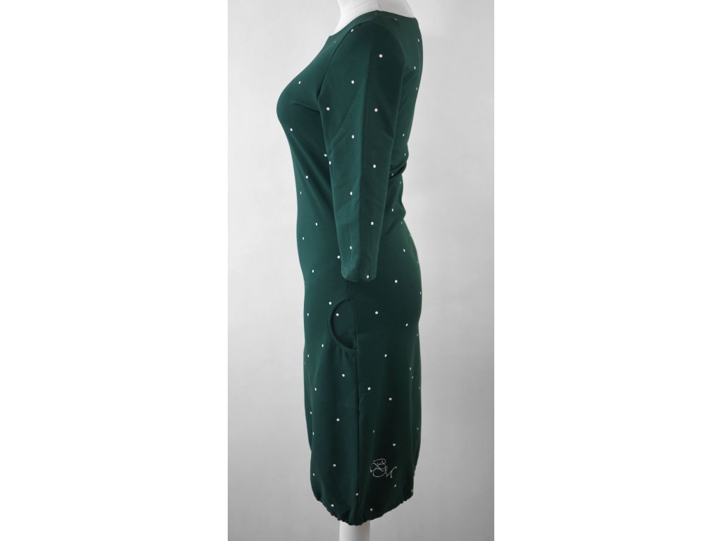 Šatovka s 3/4 rukávy - zelená s puntíky