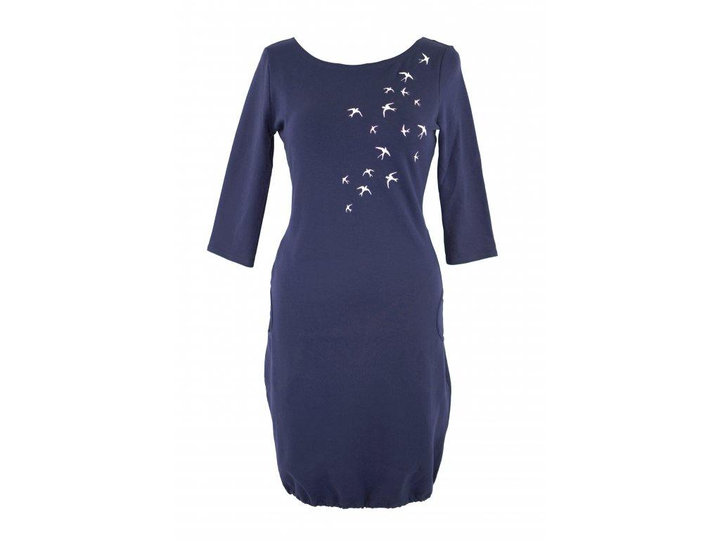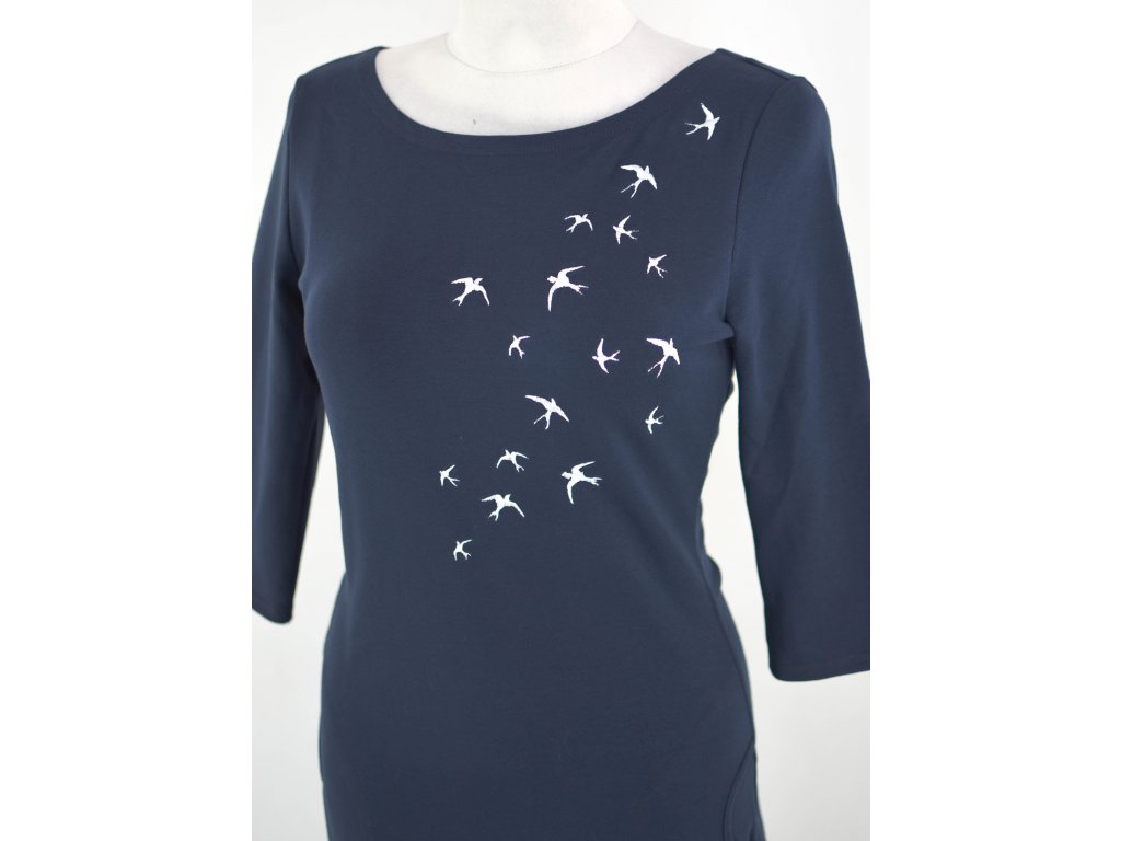 Šatovka s 3/4 rukávy - modrá a vlaštovky