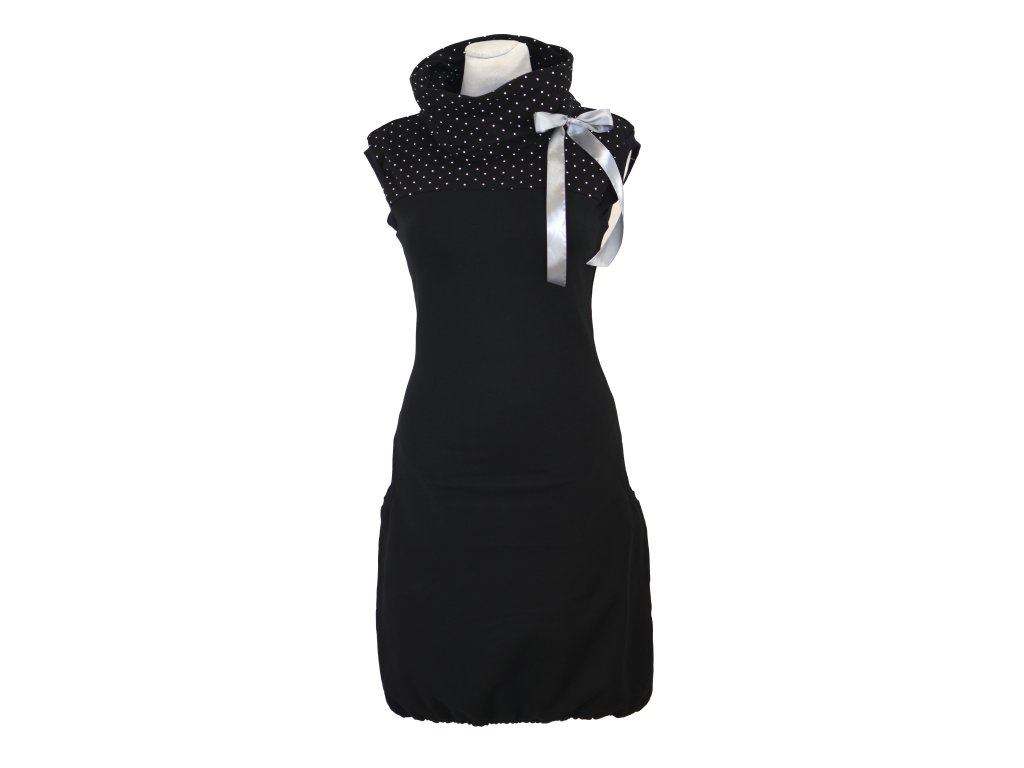 Dámská šatovka projmutá do pasu a volnějšími boky. Má přinechané rukávky lemované úpletem s dostatečným prostorem na vrstvení, dole je stažená do gumičky (otvorem si ji můžete vyndat nebo povolit/utáhnout). Šatovka je určená k vrstvení – podvléknete tričkem a punčochami nebo legínami a hurá do světa. Skvěle se unosí s tričky všemožných barev nebo s barevnými punčochami. Límec se dá stáhnout stuhou provlečenou otvorem uvnitř. Stuha se dá lehce vyjmout i svépomocí znovu vložit... :)