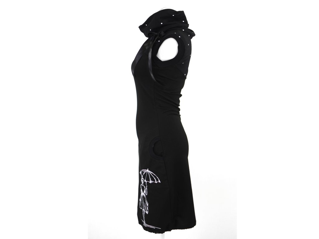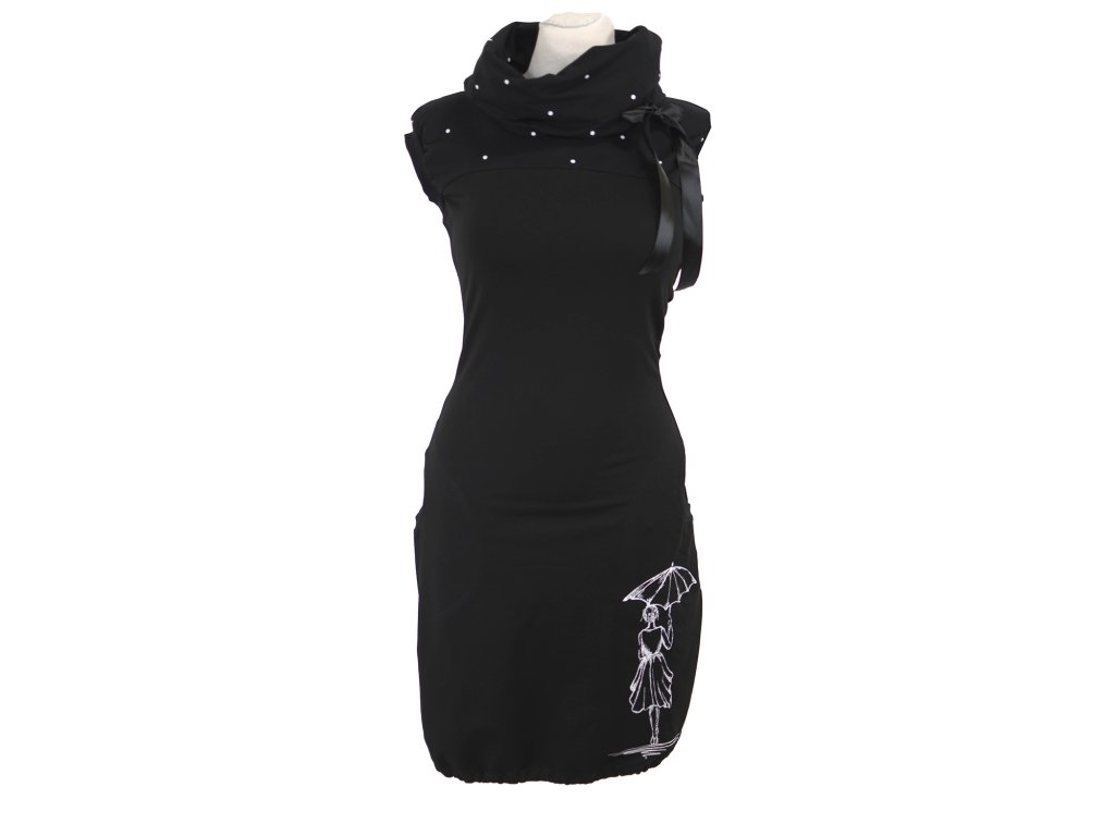 Šatovka s límcem - černá - dívka v dešti