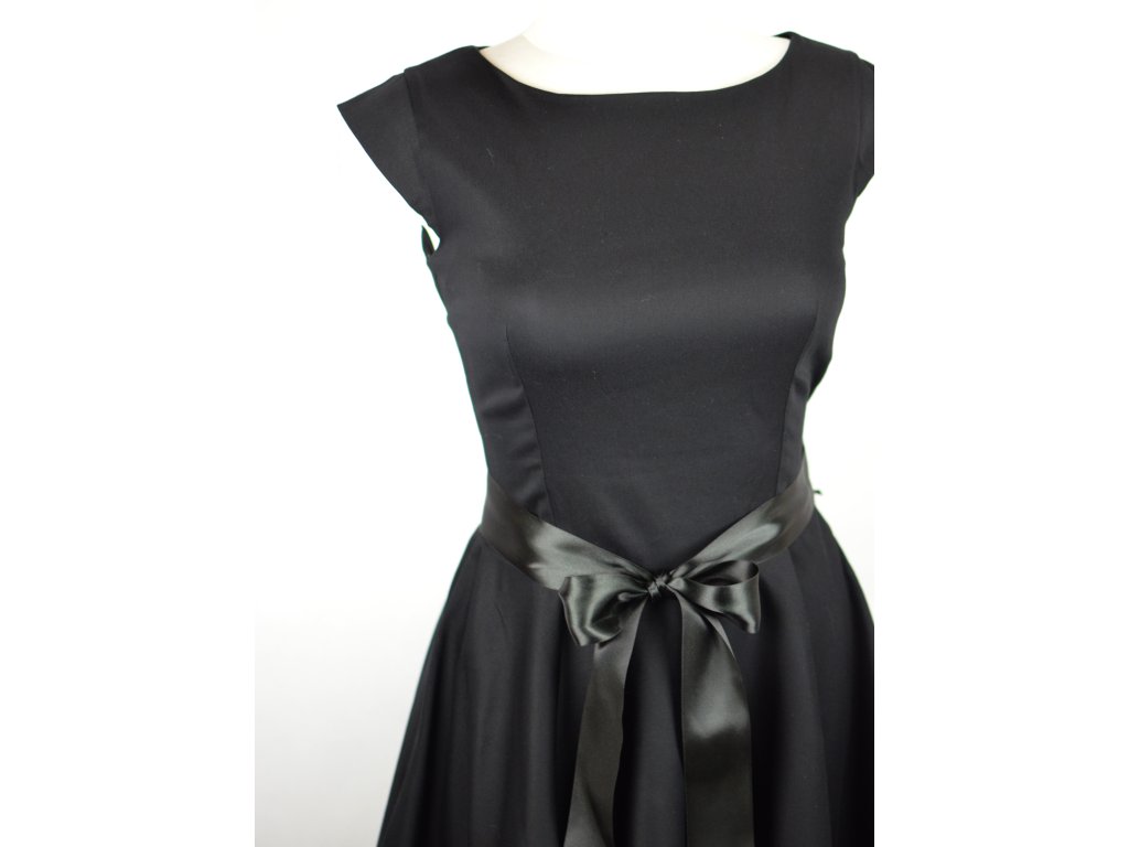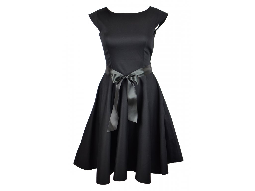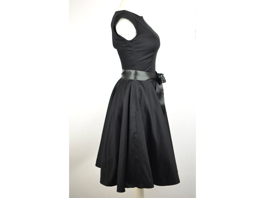 Dámské kolové šaty s podšívkou a krátkými rukávky. Jsou tvarované záševky a středem zadního dílu. Pas je posazen níž, nemají příliš hluboký výstřih. Průkrčník je začištěn podsádkou, v sukni jsou vsazené záhybky do pasu, na boku skrytý zip a skryté kapsy. V pase mají stuhu na stažení.Materiál: bavlna/elastan - slabší plátno, lehce elastické, trochu lesklé :)podšívka: 100% polyester