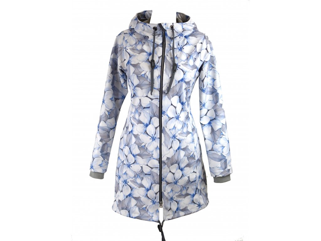 Dámský kabátek rovnějšího prodlouženého střihu s projmutým pasem, který hlavně tvaruje napevno všitá guma na zádech ve středu zadního dílu. Záda jsou nepatrně delší než přední část, spodek zadního dílu se lehce rozšiřuje a dolní lem je dokulata. Ve členícím švu v oblasti boků jsou dvě všité kapsy - kapsový váček a kapsový průhmat je částečně ze softshellu a částečně z bavlněného úpletu, největší kapsy, co jsme doposud u kabátků měli... :)