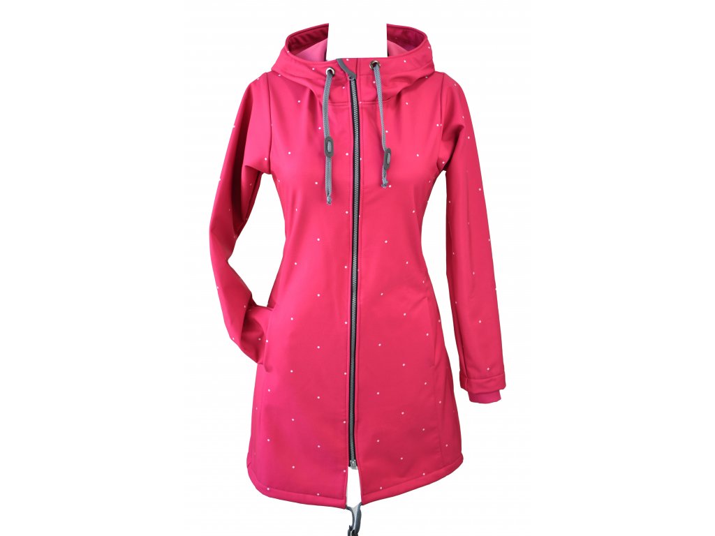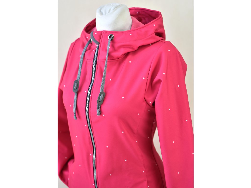 Softshellový kabát - základní - sytě růžový s puntíčky