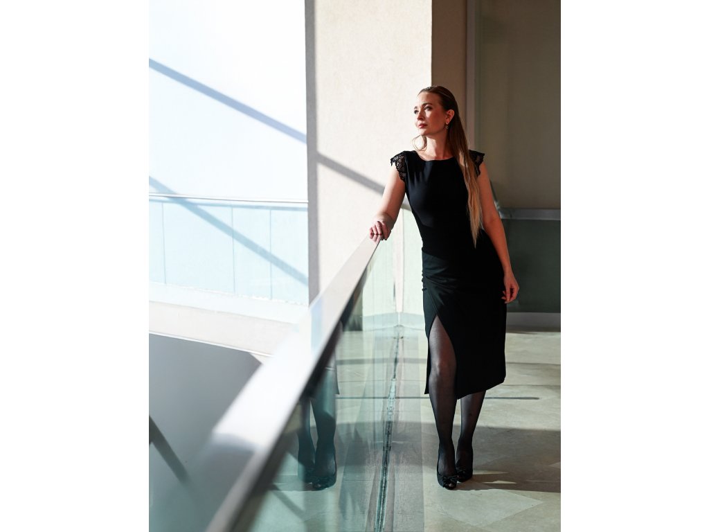 • Materiál: 60% viskóza + 35% nylon + 5% elastan - pevnější kostýmová látka, pruží