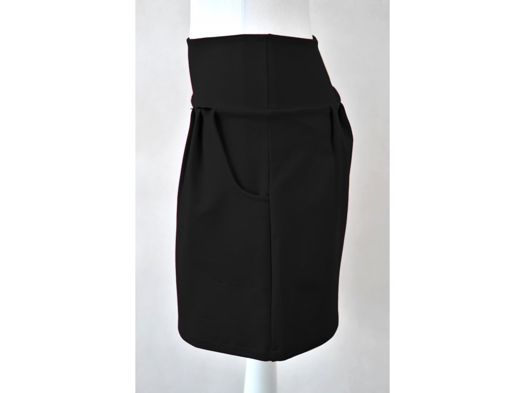 Dámská sukně lehce áčkového střihu. Skvěle kombinovatelná jako komplet s našimi saky, ale lze ji také nosit jako volnočasovou. Je ušitá z elastického materiálu, proto nemá zip. Záhybky jsou vepředu i vzadu. V bocích dvě kapsy... :)