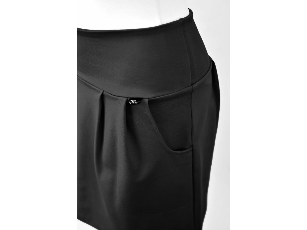 Dámská sukně lehce áčkového střihu. Skvěle kombinovatelná jako komplet s našimi saky, ale lze ji také nosit jako volnočasovou. Je ušitá z elastického materiálu, proto nemá zip. Záhybky jsou vepředu i vzadu. V bocích dvě kapsy... :)