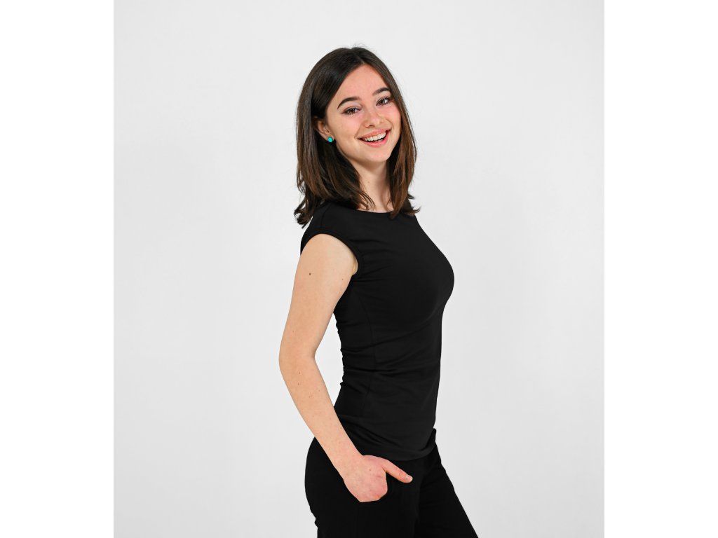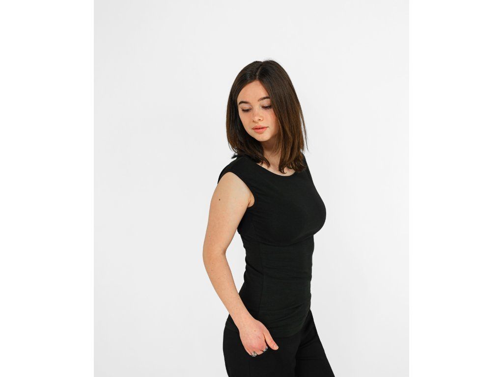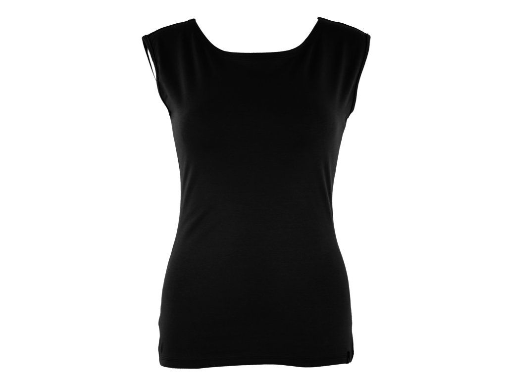 Dámské tílko z elastického úpletu. V pase projmutého střihu, lodičkový výstřih, ramínka širší.