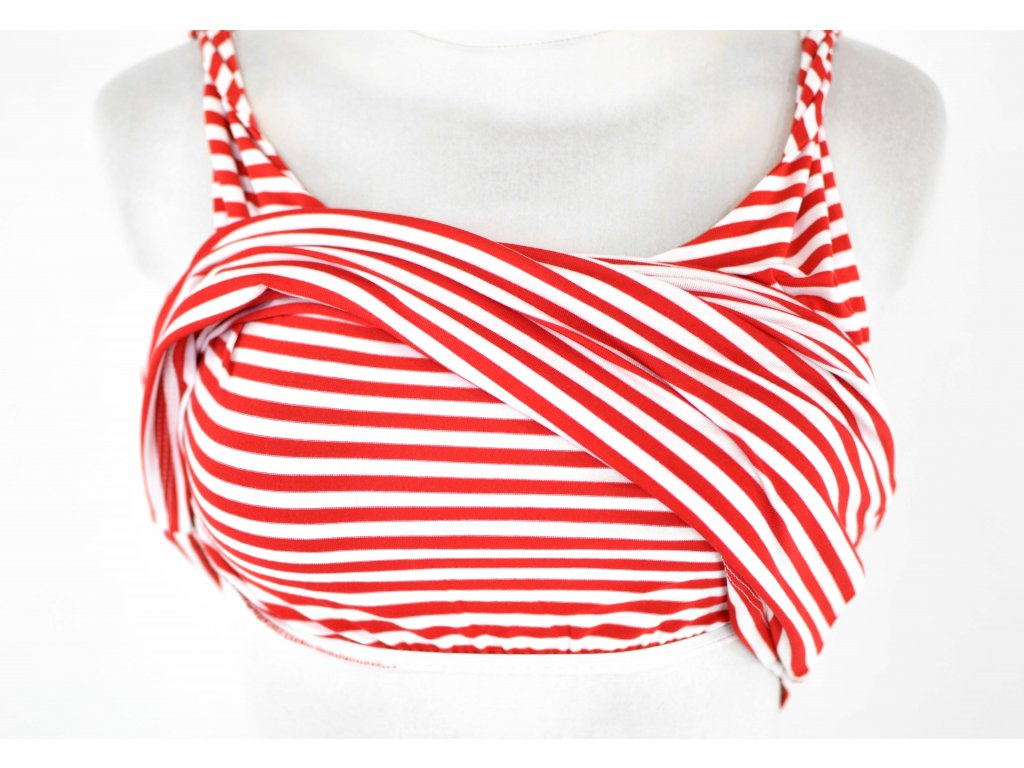 Dámské tílko z bambusového elastického úpletu. V pase lehce projmuté, kulatý výstřih vepředu, vzadu hlubší výstřih spíše do V. Mají zdvojenou látku v oblasti hrudníku zakončenou gumičkou. Tílko dělá zajímavým detail v podobě přetočených ramínek.