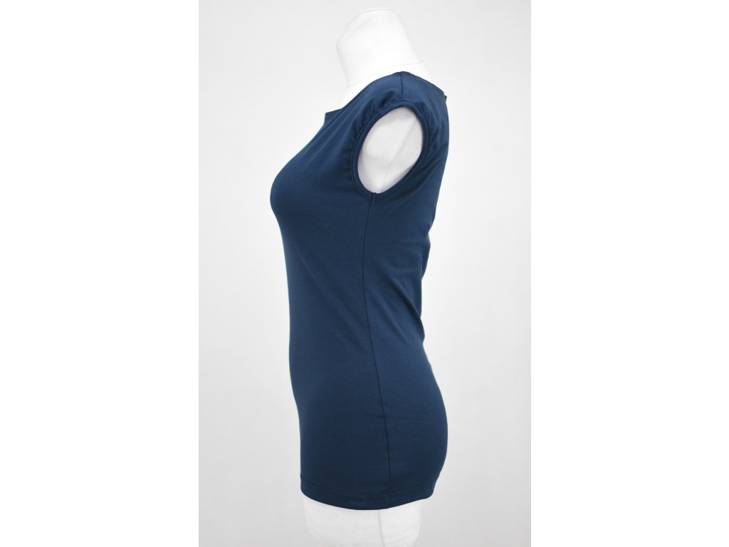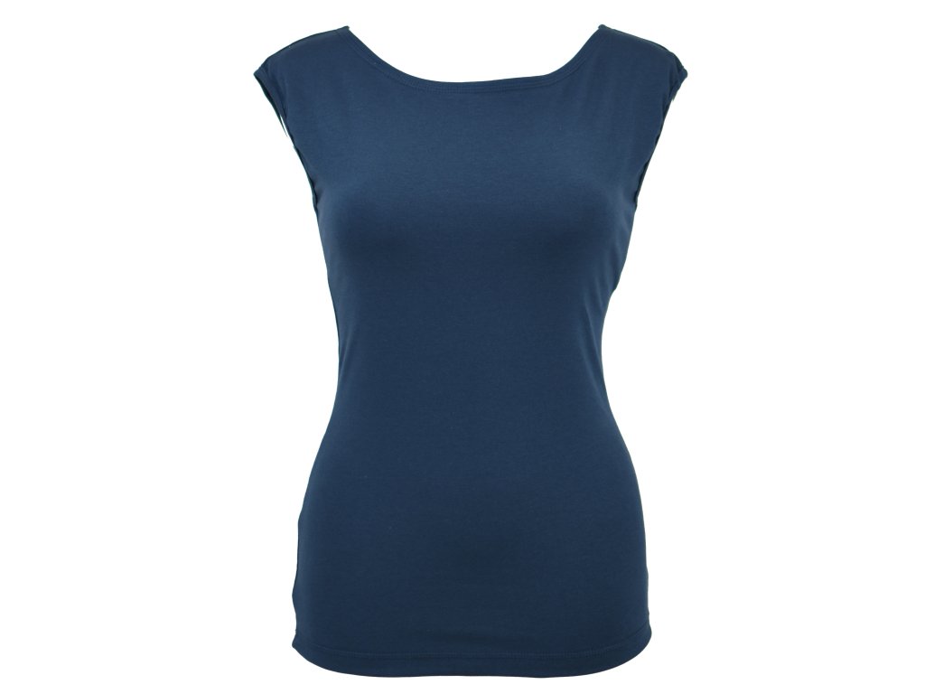 Dámské tílko z elastického úpletu. V pase projmutého střihu, lodičkový výstřih, ramínka širší.