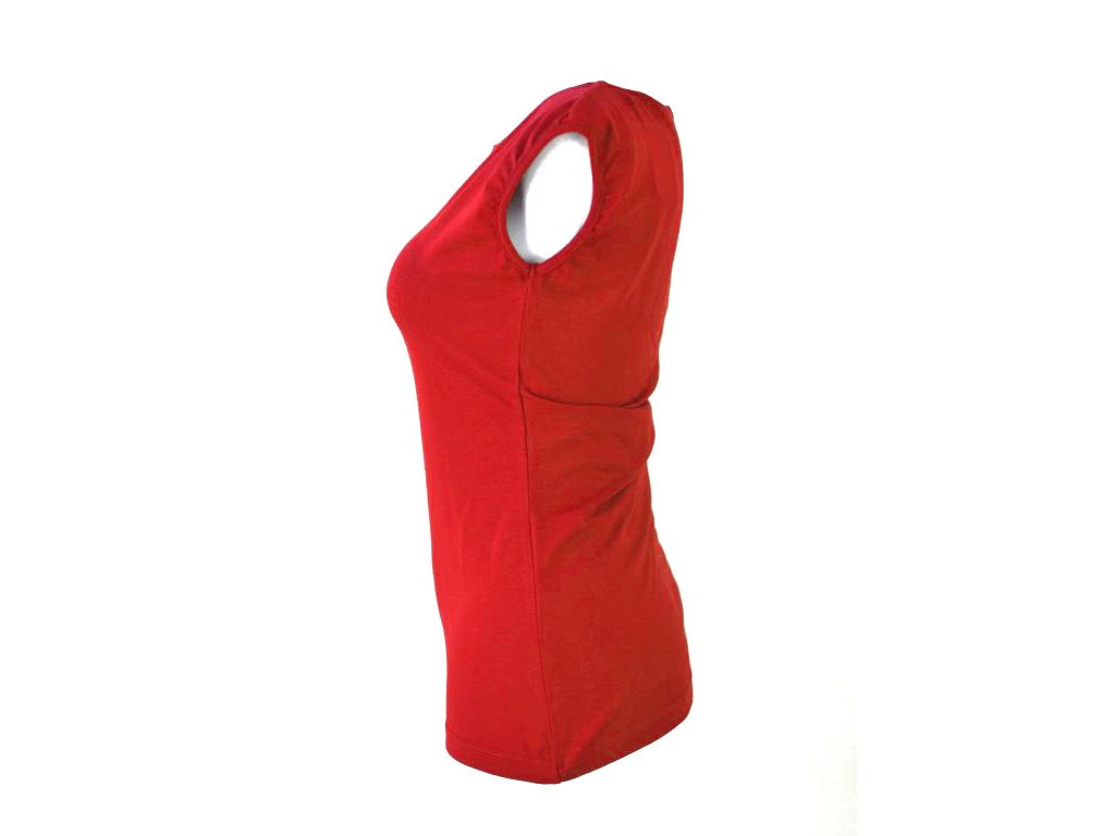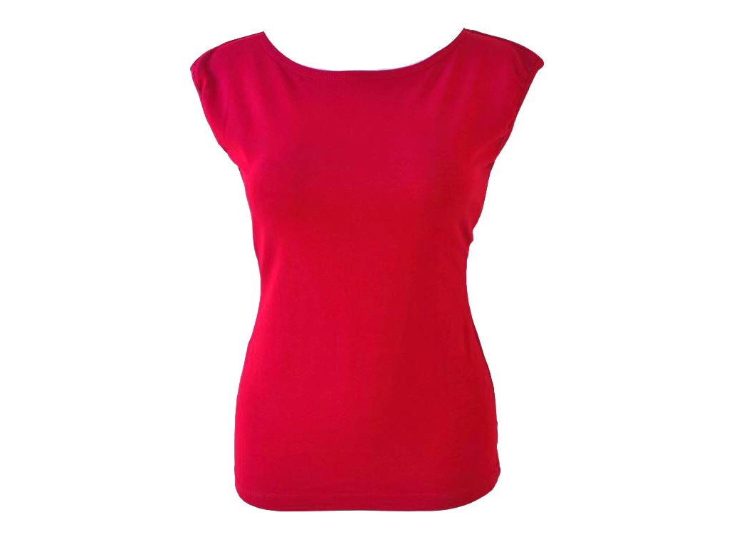 Dámské tílko z elastického úpletu. V pase projmutého střihu, výstřih menší lodičkový, ramínka širší.