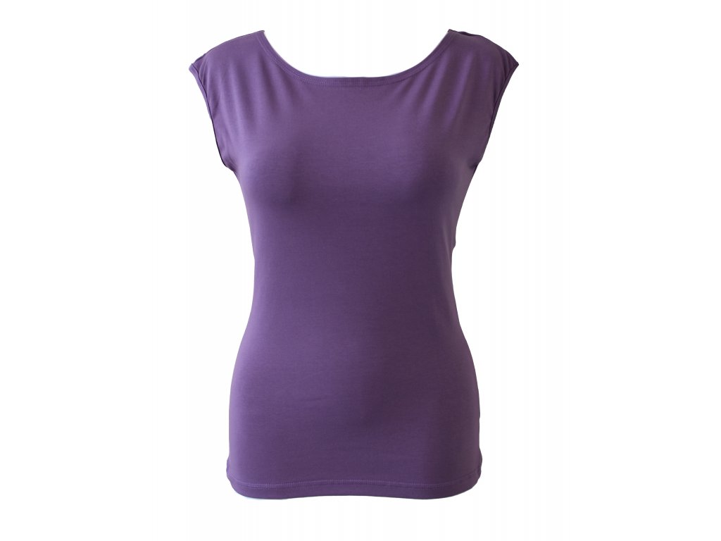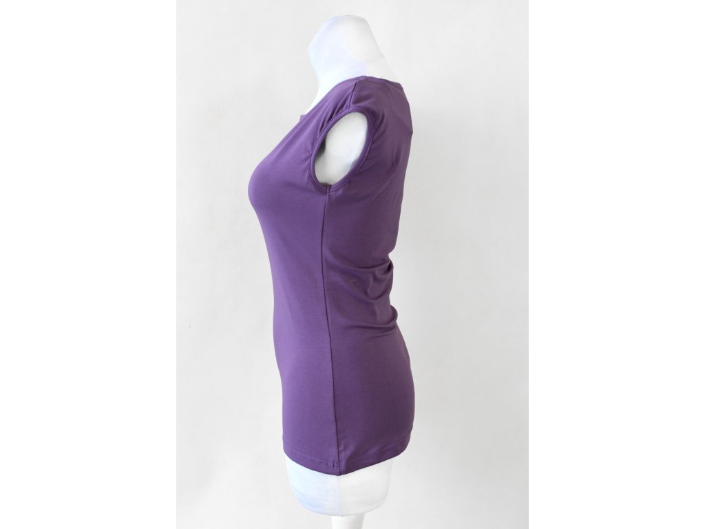 Dámské tílko z elastického úpletu. V pase projmutého střihu, výstřih menší lodičkový, ramínka širší.