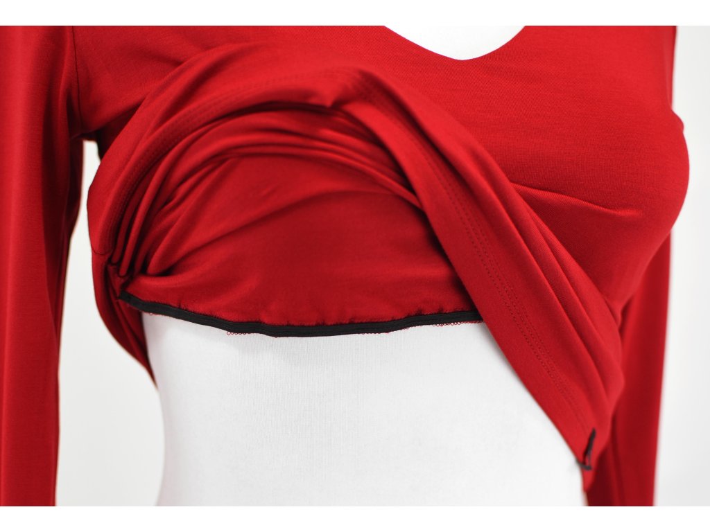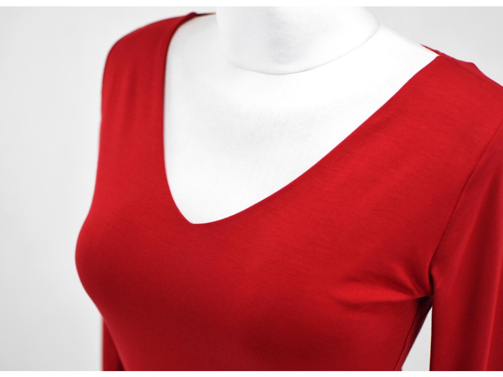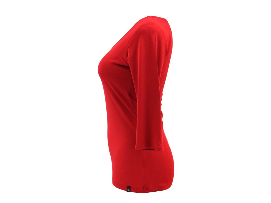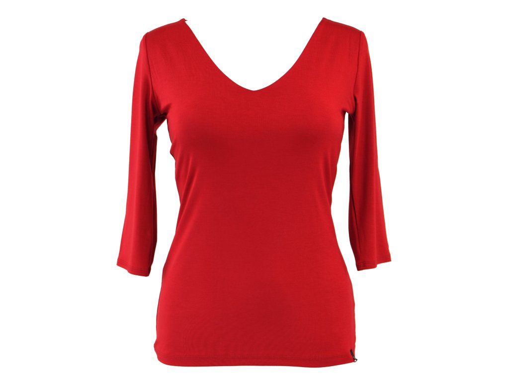 Tričko 3/4 rukáv - výstřih do V - rudé