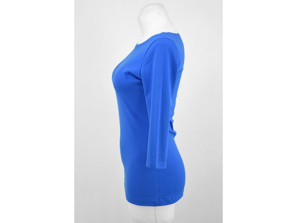 Dámské tričko z příjemného elastického úpletu. V pase projmuté, lodičkový výstřih, 3/4 rukáv.