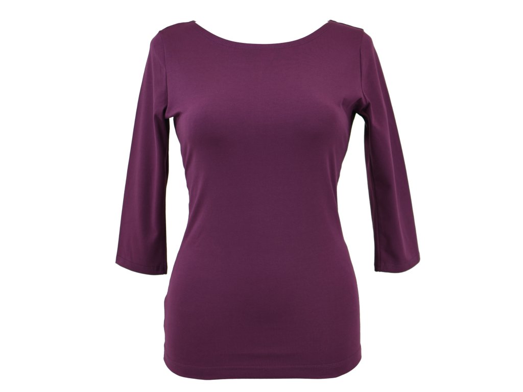 Dámské tričko z příjemného elastického úpletu. V pase projmuté, lodičkový výstřih, 3/4 rukáv.
