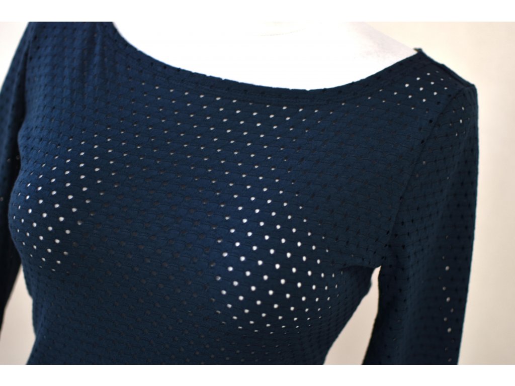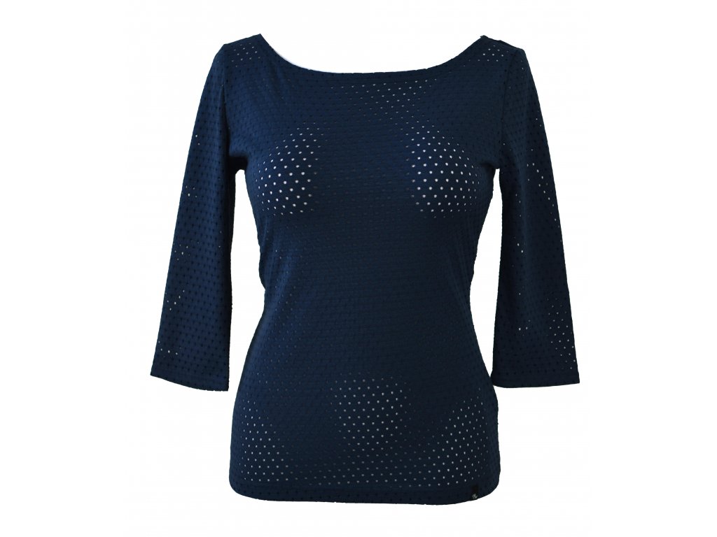 Dámské tričko z příjemného elastického úpletu. V pase projmuté, lodičkový výstřih.