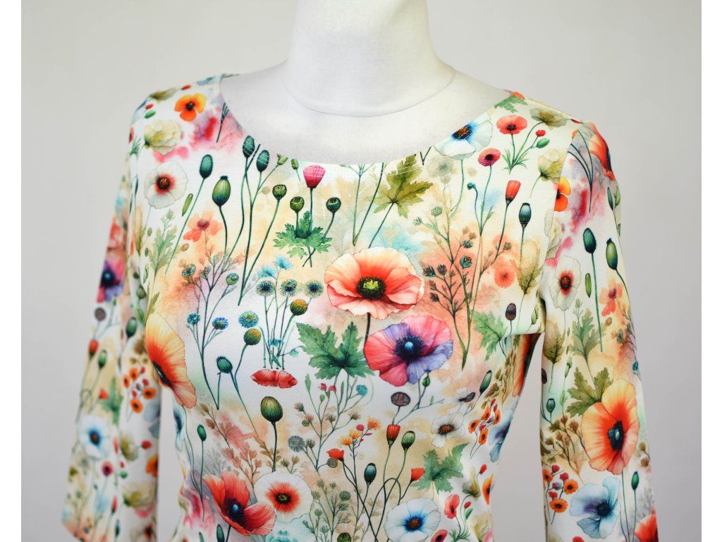 Dámské tričko z příjemného elastického úpletu. V pase projmuté, lodičkový výstřih.