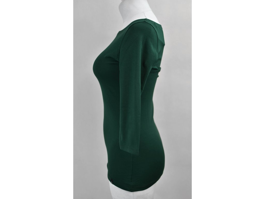 Dámské tričko z příjemného elastického úpletu. V pase projmuté, lodičkový výstřih.