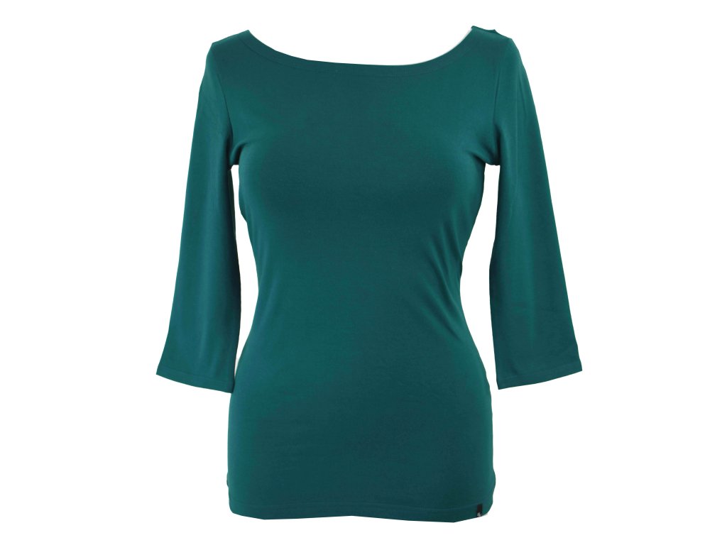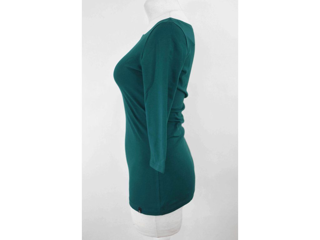 Dámské tričko z příjemného elastického úpletu. V pase projmuté, lodičkový výstřih, 3/4 rukáv.