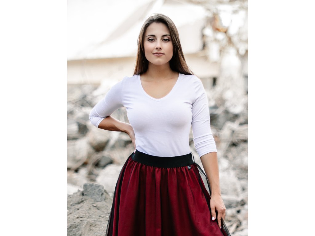 Tričko 3/4 rukáv - výstřih do V - bílé