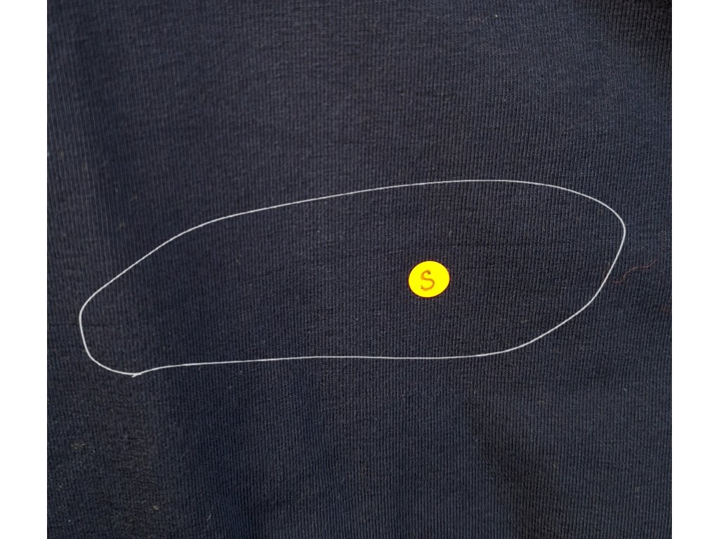 II.JAKOST = S - čára v látce na hrudníku na přední straně, XL - flek na zádech
