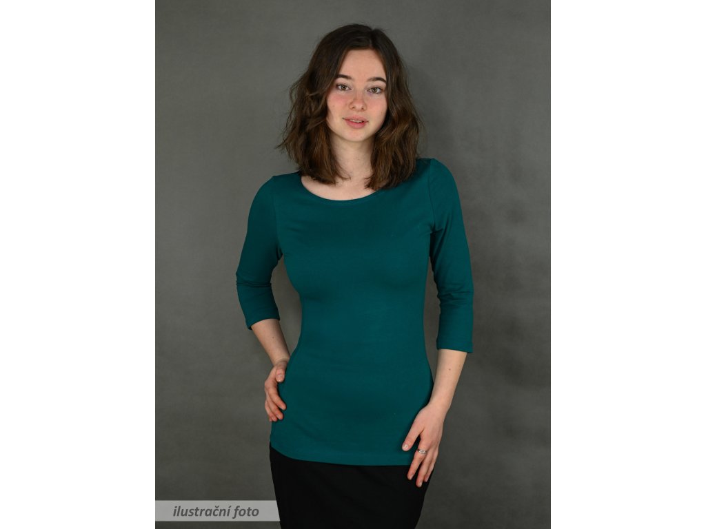 Dámské tričko z příjemného elastického úpletu. V pase projmuté, lodičkový výstřih, 3/4 rukáv.