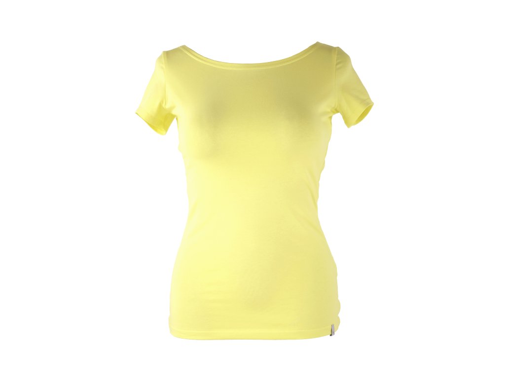 Dámské tričko z příjemného elastického úpletu. V pase projmuté, lodičkový výstřih.