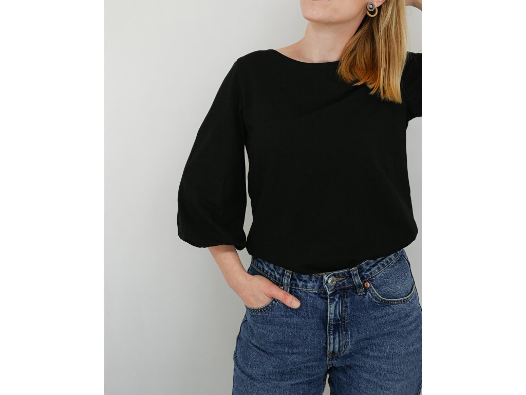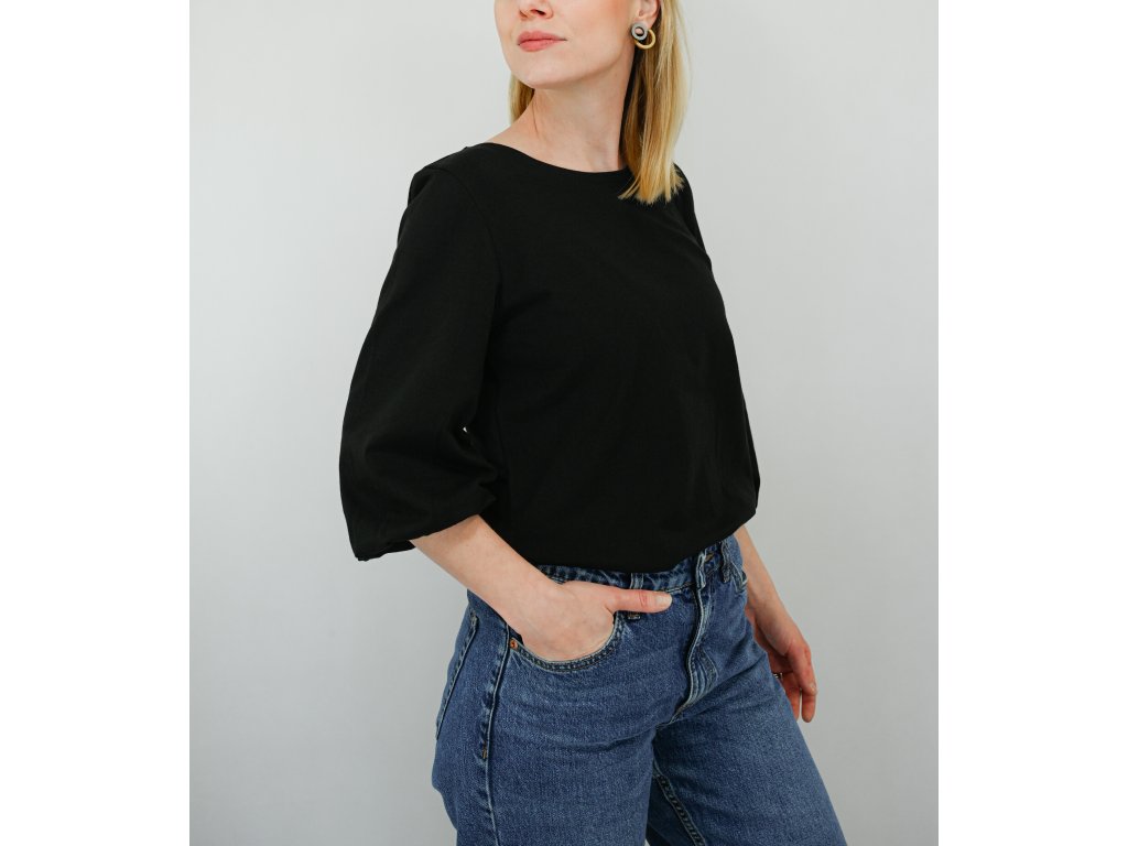 Dámské tričko oversized střihu s balonovými rukávy 3/4 délky. Rukávy jsou zakončeny gumičkou. Tričko působí elegantně a velmi žensky.