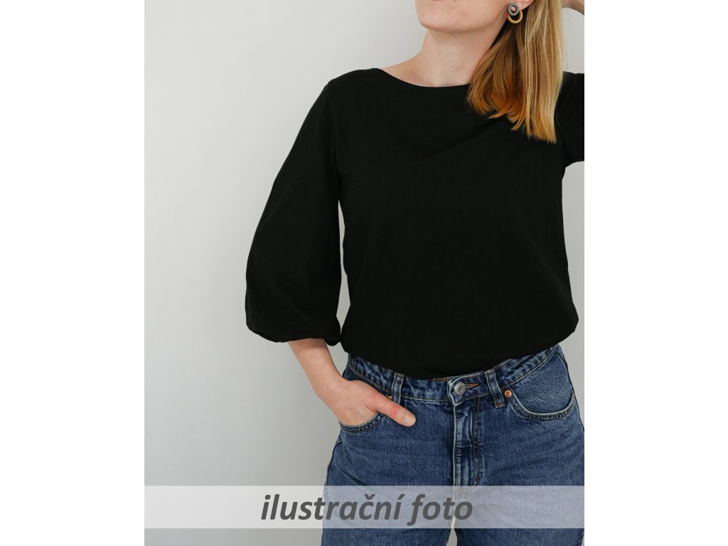 Dámské tričko oversized střihu s balonovými rukávy 3/4 délky. Rukávy jsou zakončeny gumičkou. Tričko působí elegantně a velmi žensky. Pokud chcete velikost více na tělo, zvolte menší velikost.