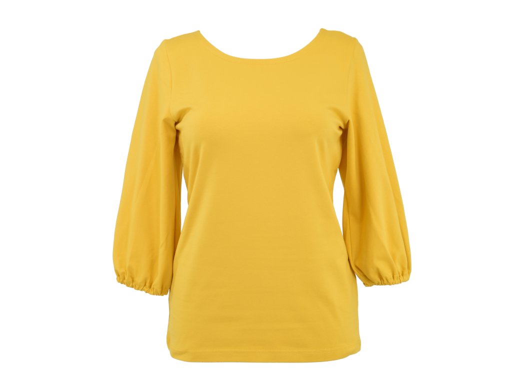 Dámské tričko oversized střihu s balonovými rukávy 3/4 délky. Rukávy jsou zakončeny gumičkou. Tričko působí elegantně a velmi žensky.