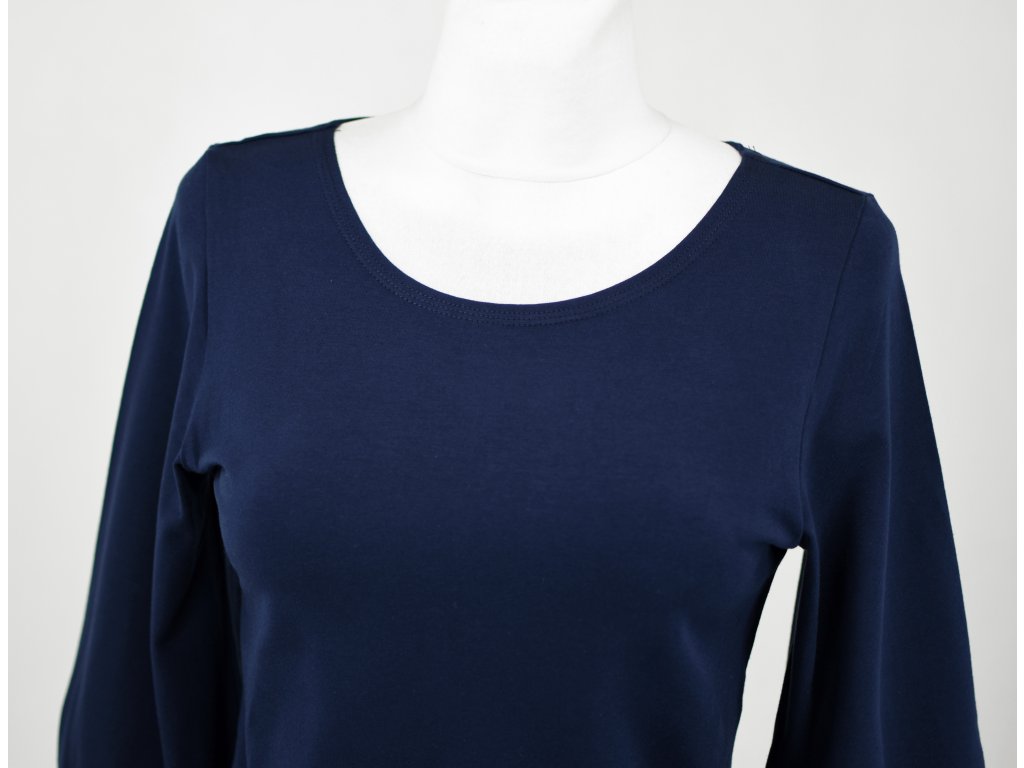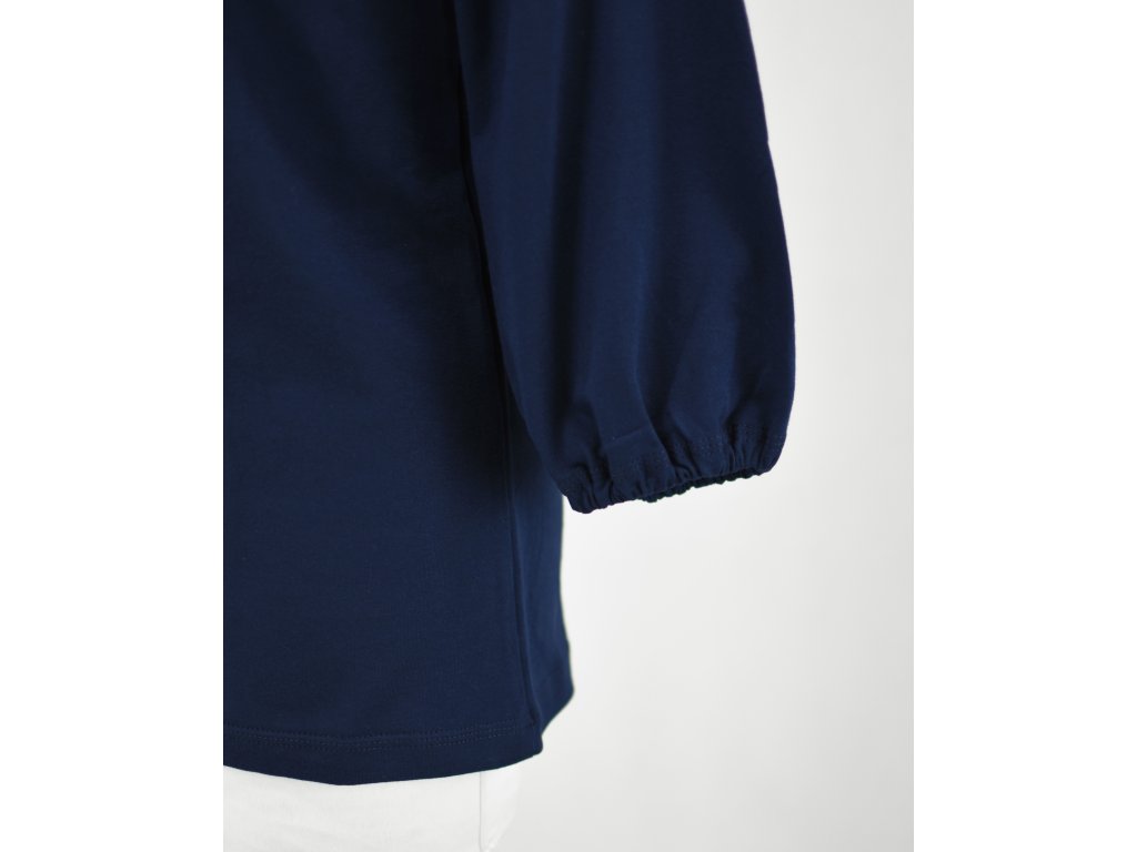 Dámské tričko oversized střihu s balonovými rukávy 3/4 délky. Rukávy jsou zakončeny gumičkou. Tričko působí elegantně a velmi žensky. Pokud chcete velikost více na tělo, zvolte menší velikost.