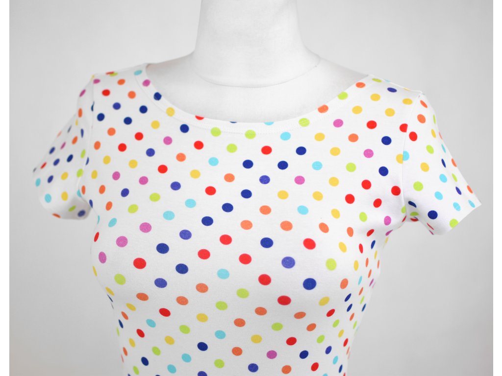 Dámské tričko z příjemného elastického úpletu. V pase projmuté, lodičkový výstřih.