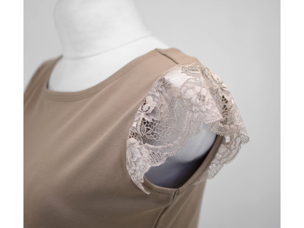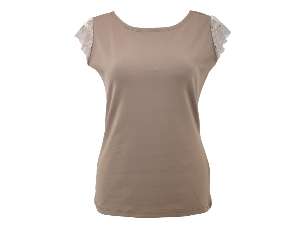 Tričko s krajkovými rukávky - béžové s krémovou krajkou II.JAKOST