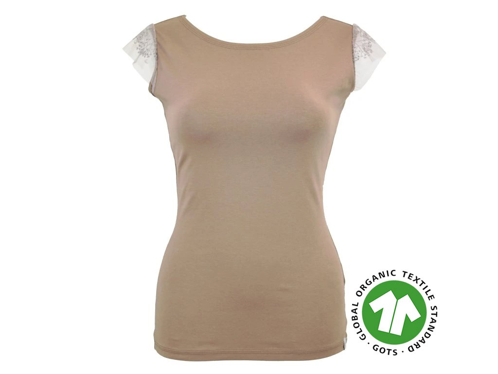 Tričko s krajkovými rukávky - světle šedá krajka - GOTS