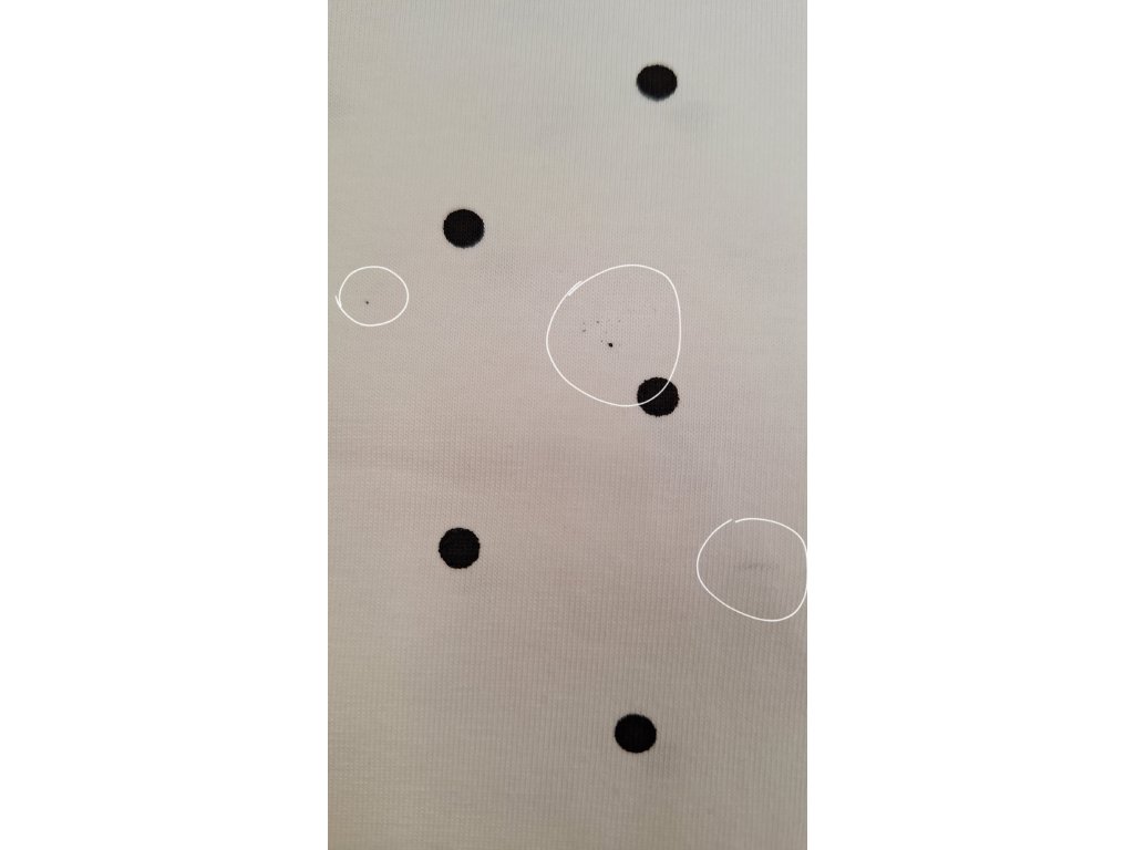 II.JAKOST = čárky v látce/ tečky od barvy puntíků/ o odstín jiná barva rukávu a trička