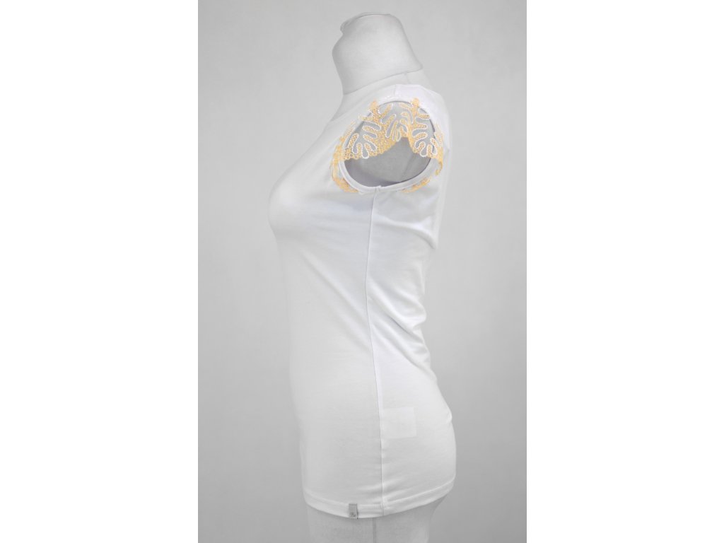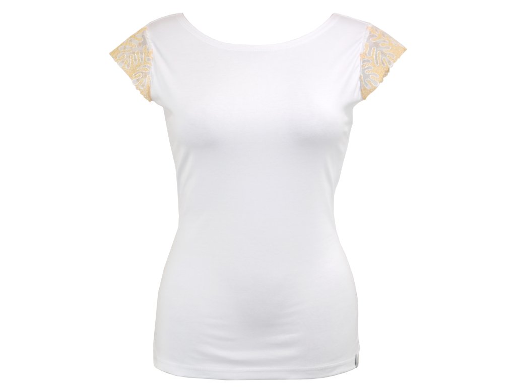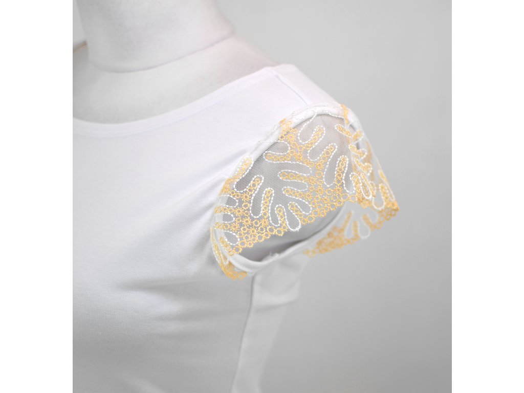 Tričko s krajkovými rukávky - zlatá krajka