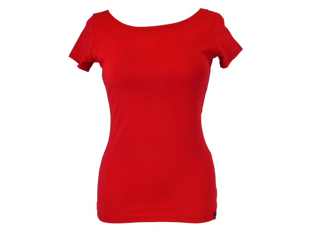 Dámské tričko z příjemného elastického úpletu. V pase projmuté, lodičkový výstřih.